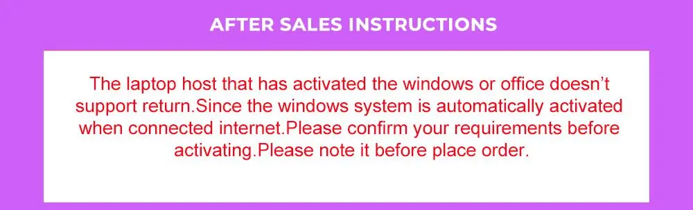 Free Return: The laptop host that has activated the windows or office dose not support Free Return,