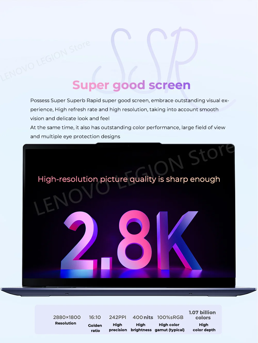 2.8K 120Hz 400 nits 16:10/100% SRGB (typical)