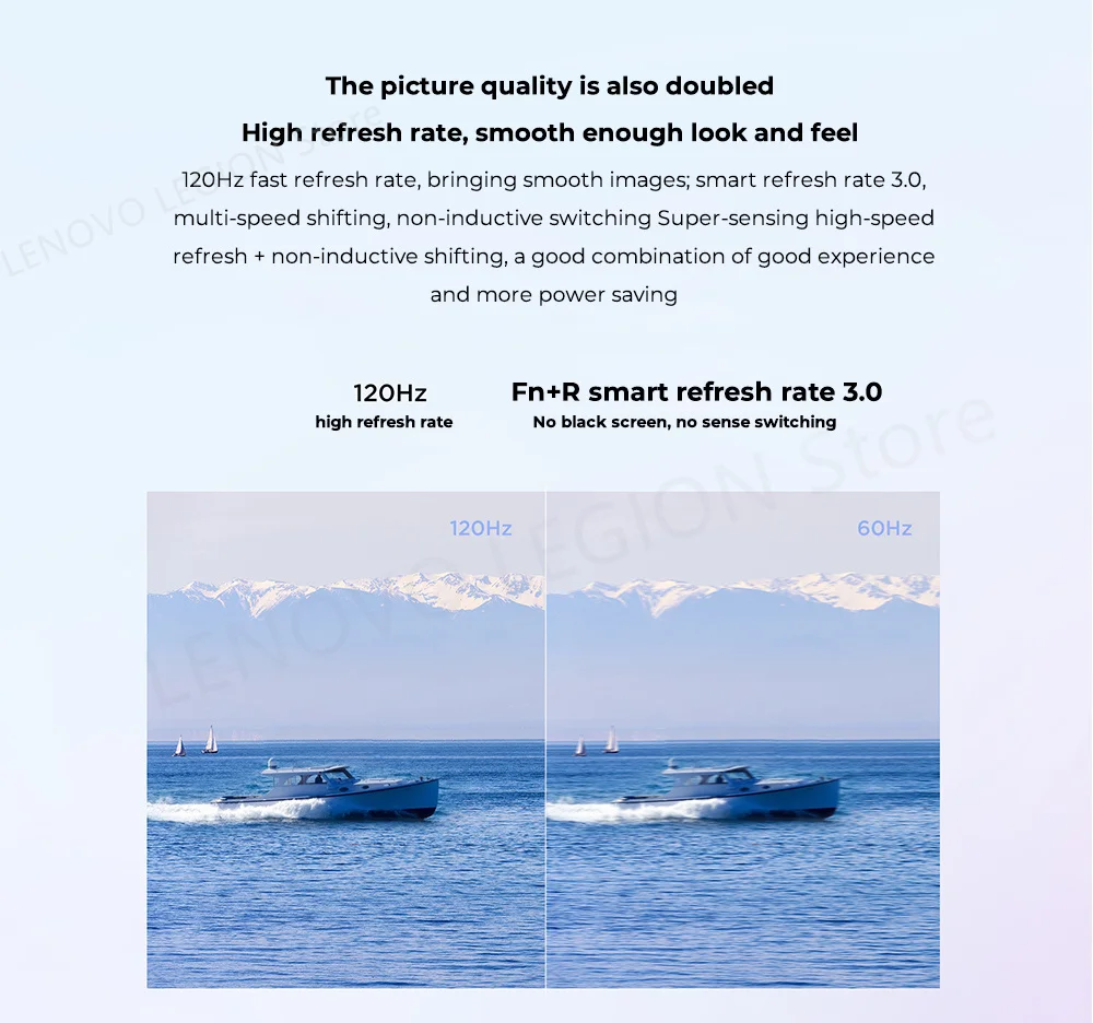 120Hz fast refresh rate, bringing smooth images; smart refresh rate 3.0,multi-speed shifting, non-inductive switching