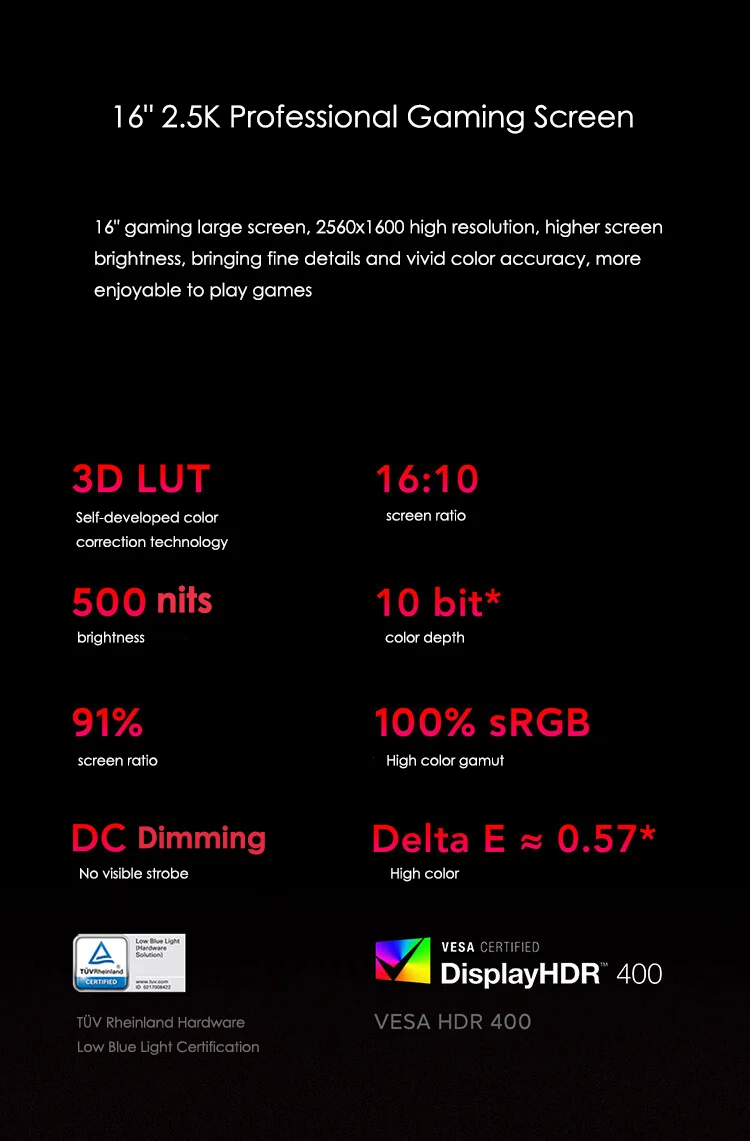 Global DC dimming, support VESA HDR 400