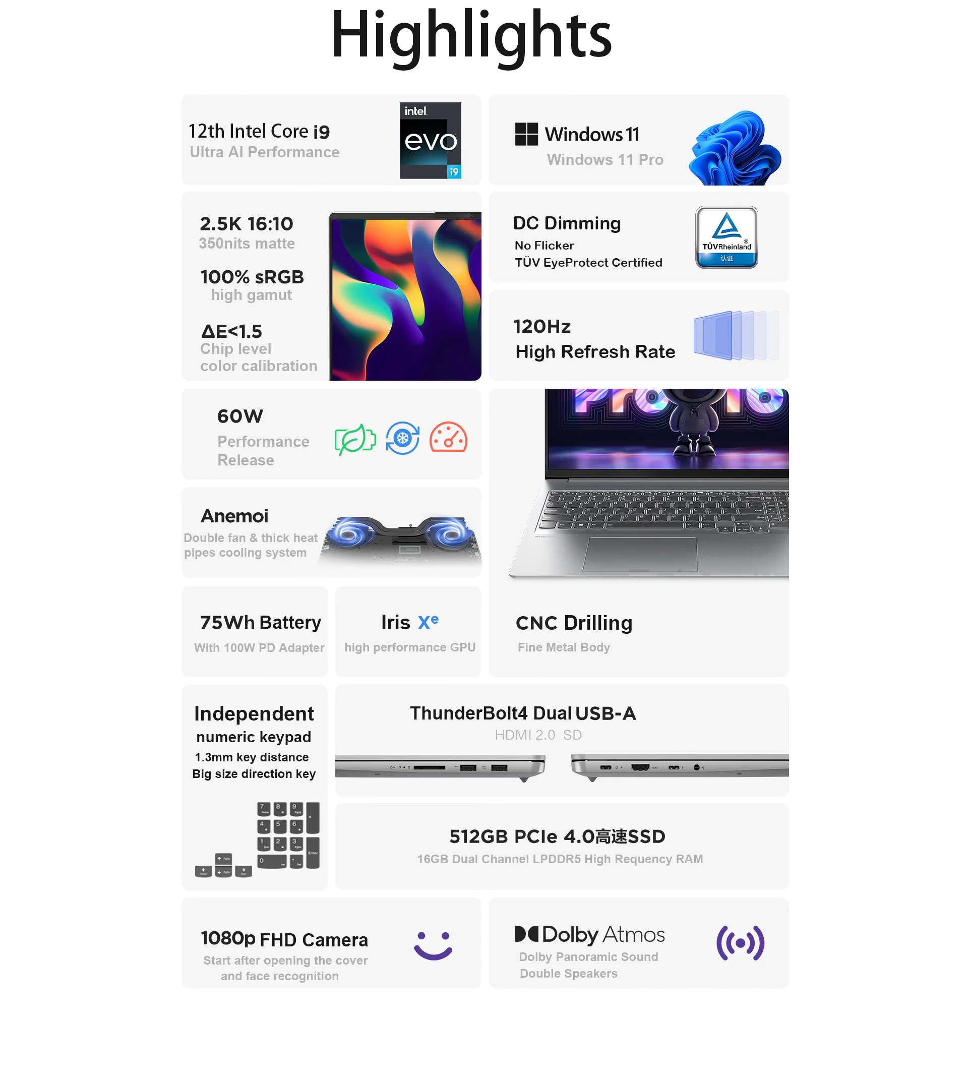i7-12900H, 16GB, 512GB SSD, Intel iRIS Xe Graphics, WiFi6, 16 Inch 2.5K Matte Screen, Windows 11 Pro