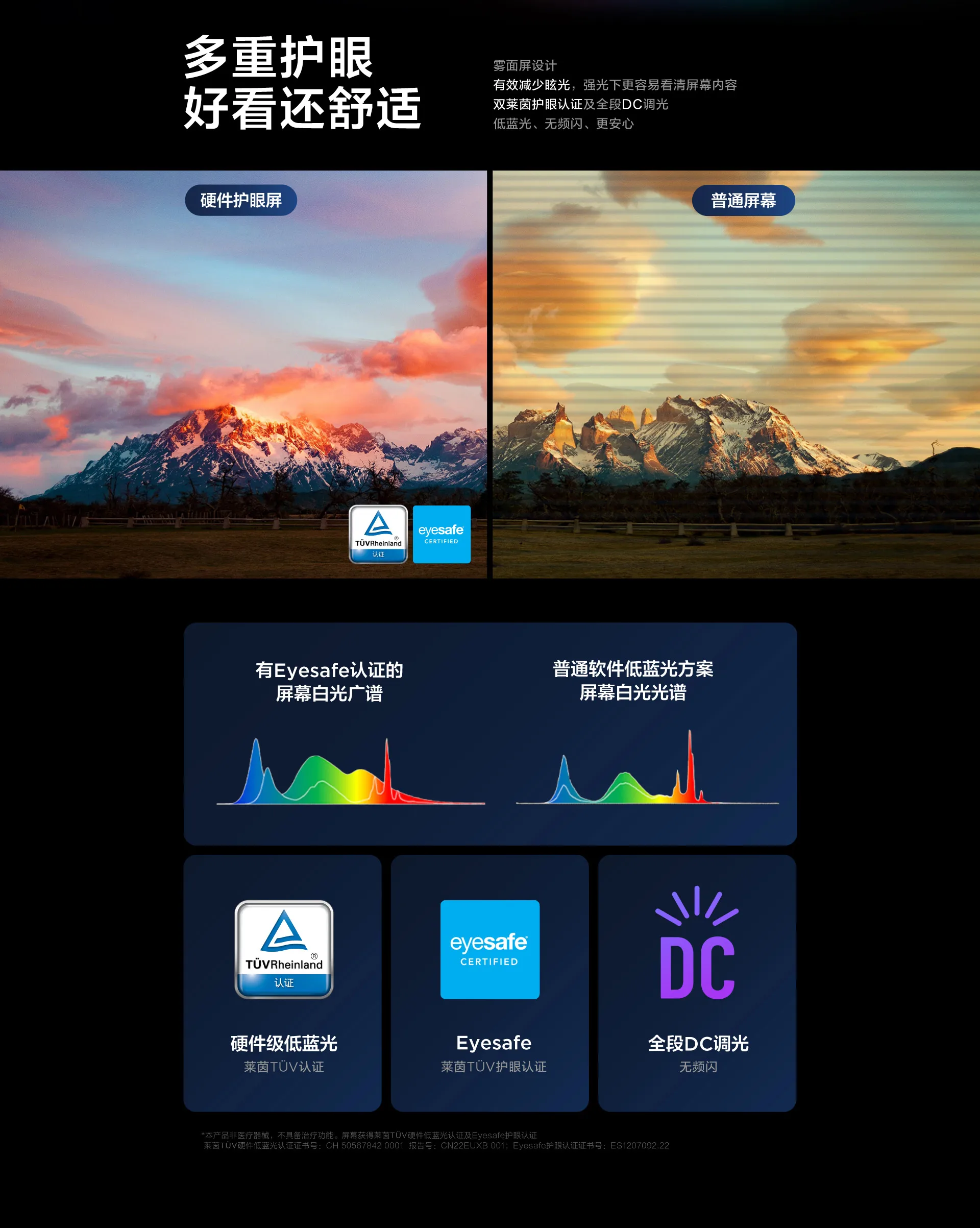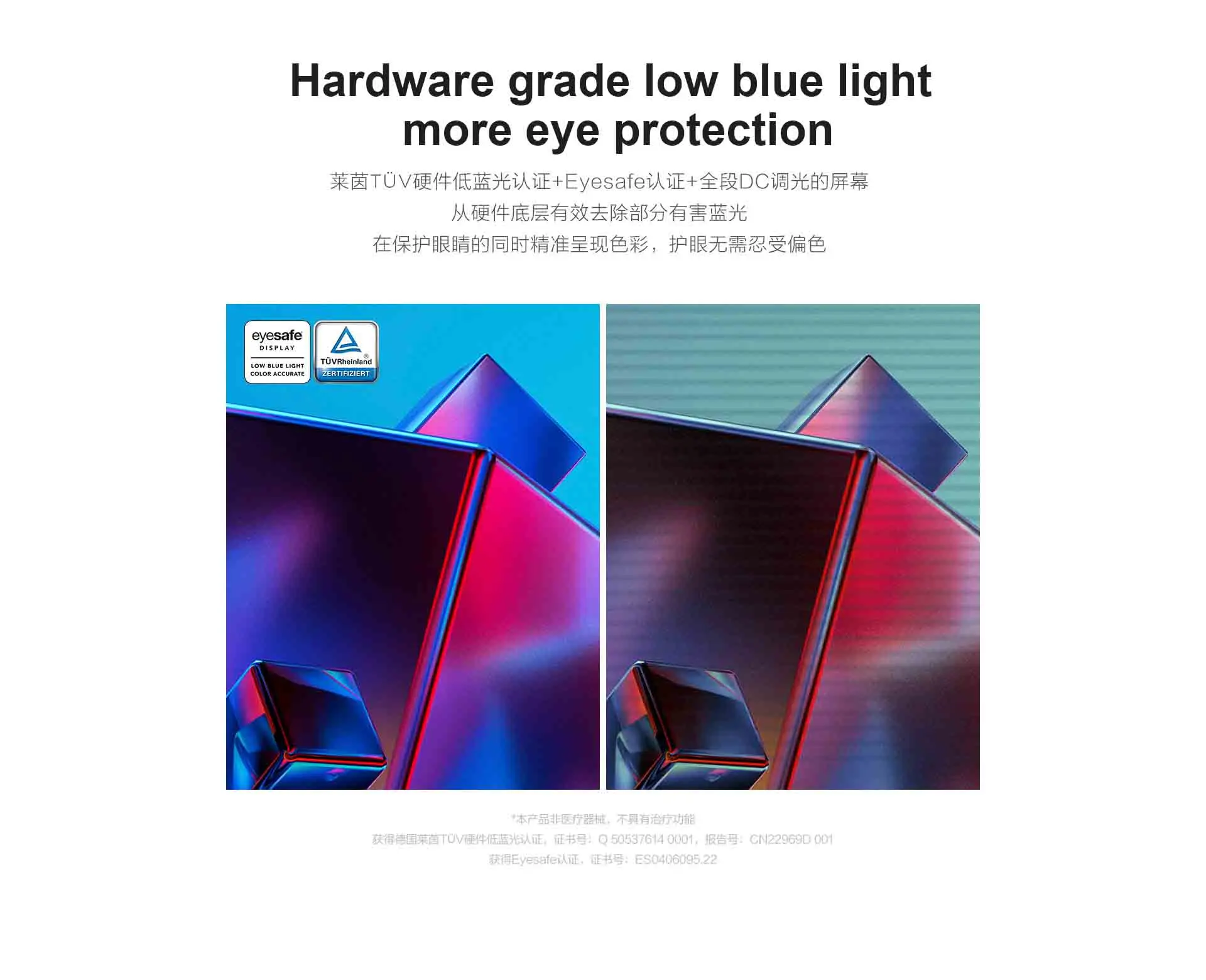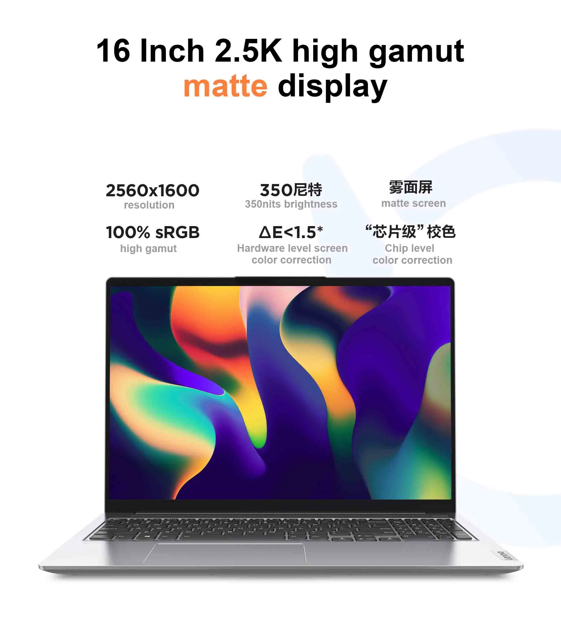 Screen Type | 2.5k IPS optional 120Hz high refresh rate, 350nits high brightness, 100% sRGB high colour gamut, Rheinland hardware low blue light + Eyesafe certification, DC dimming without flicker |