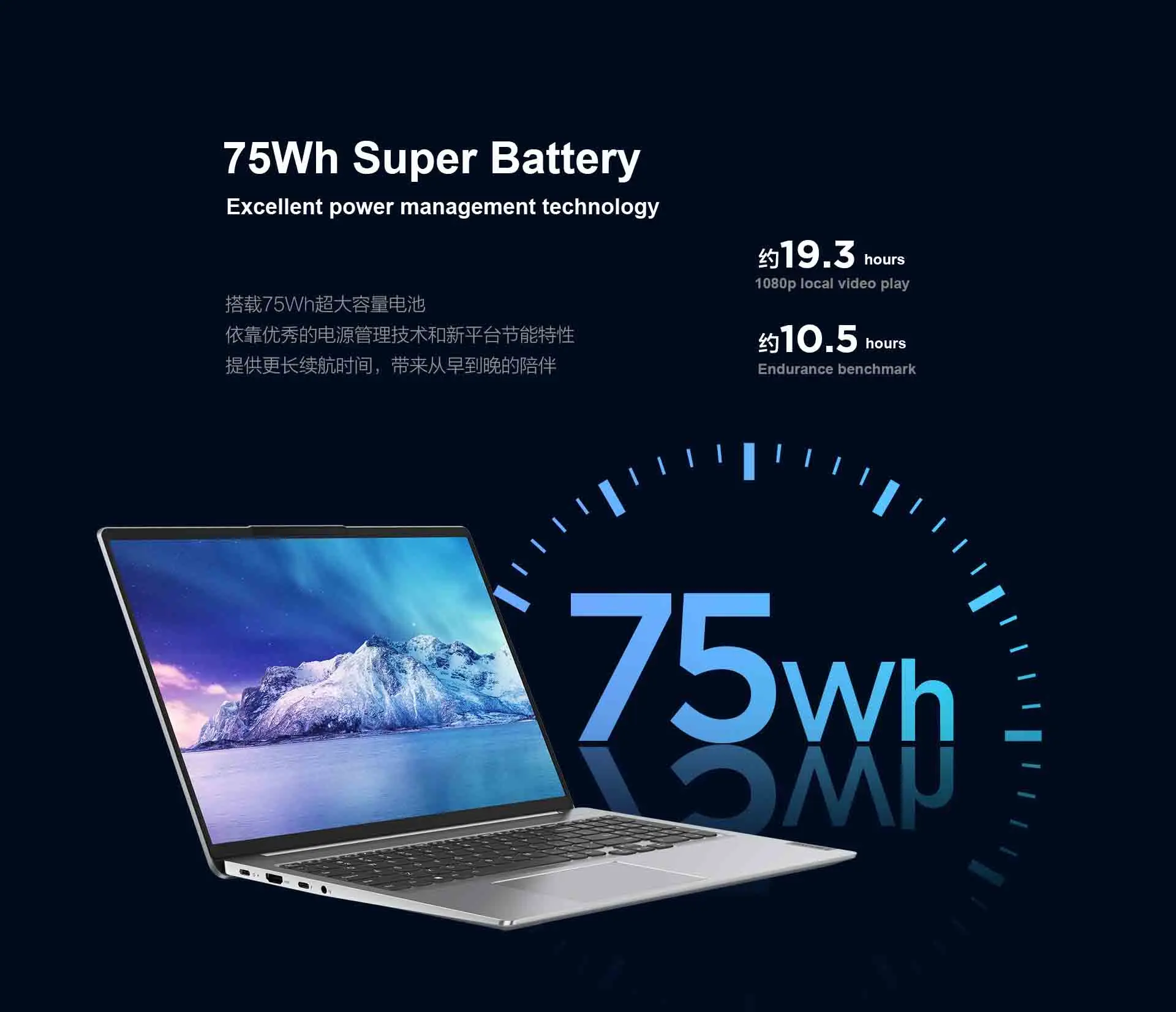 5) 75Wh large battery