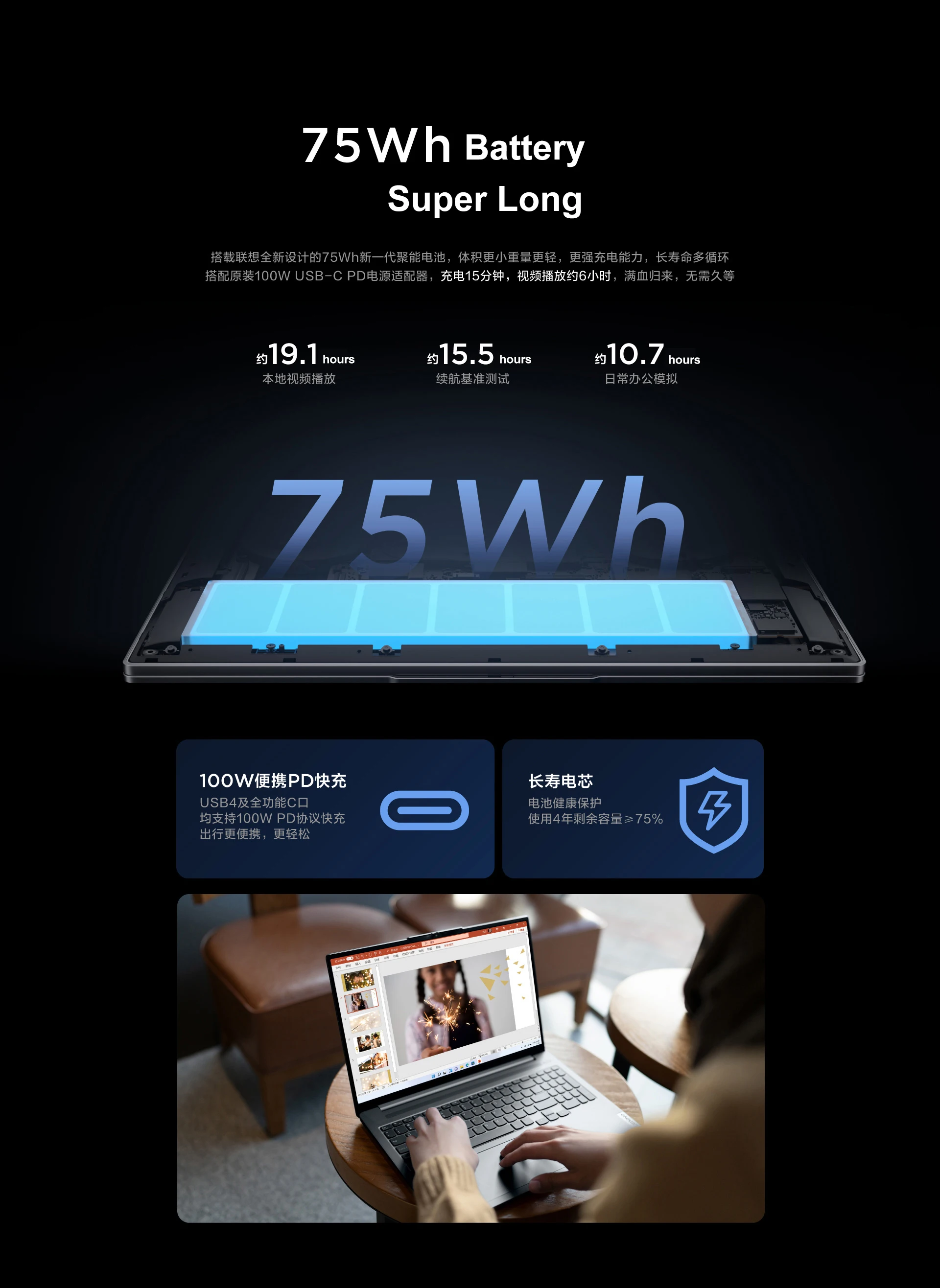 battery with support for 100W USB PD charging.
