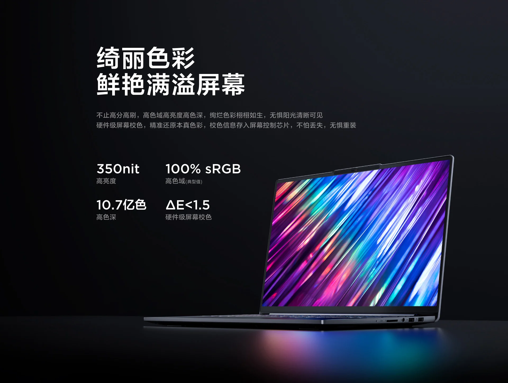 350 nits peak brightness level, 100% of the sRGB color gamut, and DC dimming