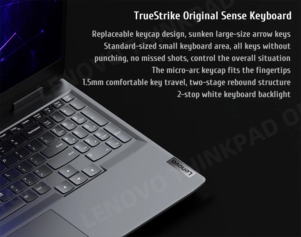 Replaceable keycap design, sunken large size arrow keys Standard- sized small keyboard area, all keys without