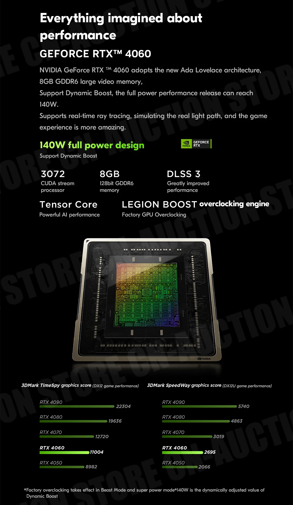NVIDIA GeForce RTX 4060 adopts the new Ada Lovelace architecture,8GB GDDR6 large video memory,Support Dynamic Boost, the full power performance release can reach140W.