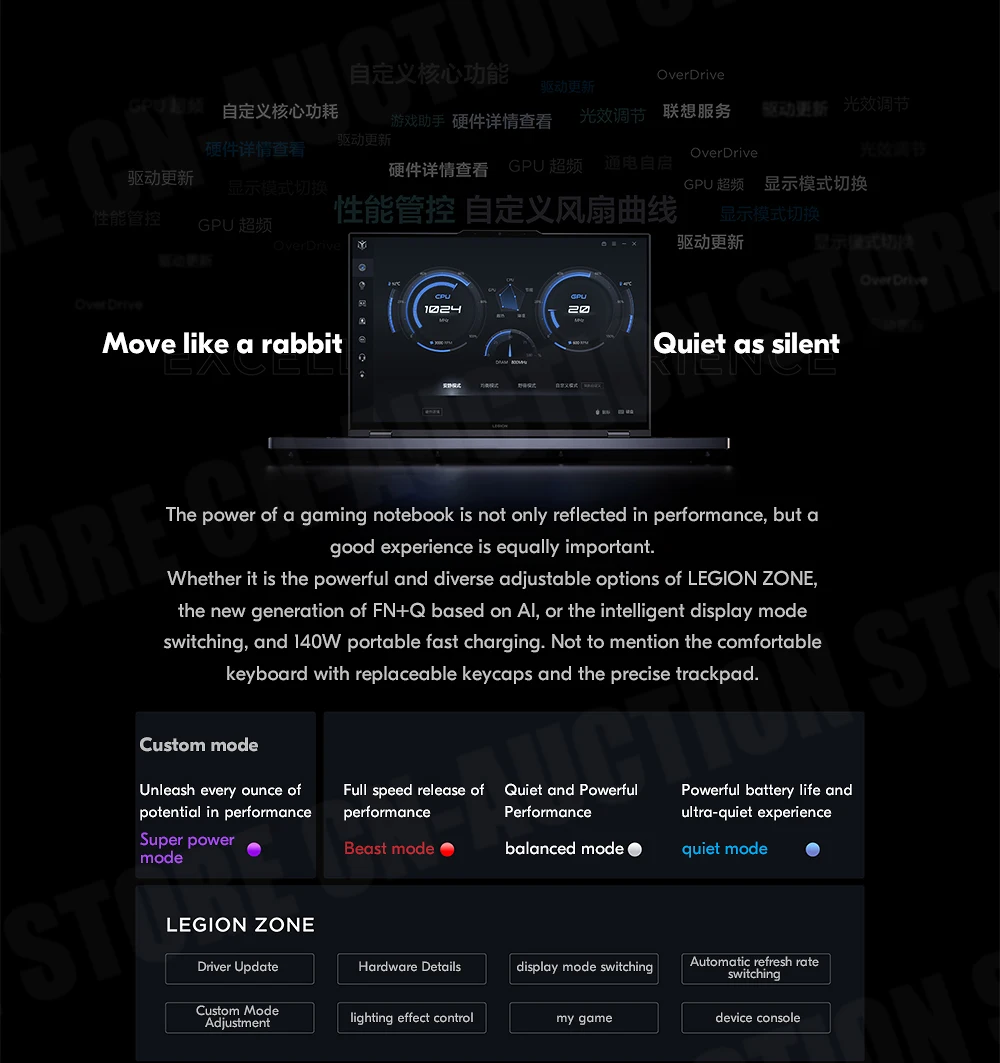 the new generation of FN+Q based on Al, or the ntelligent display mode switching, and 140W portable fast charging. Not to mention the comfortable keyboard with replaceable keycaps and the precise trackpad.