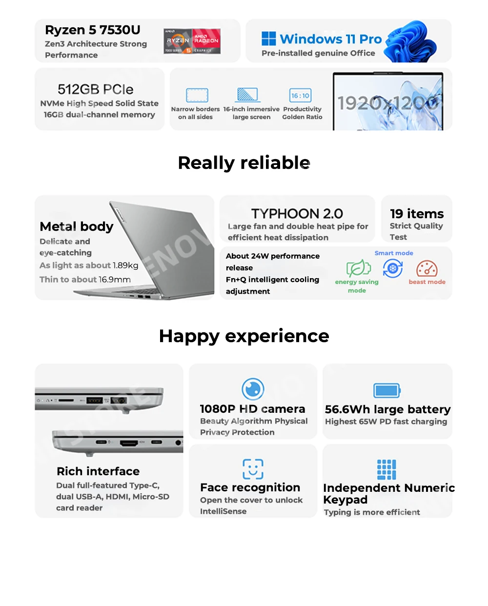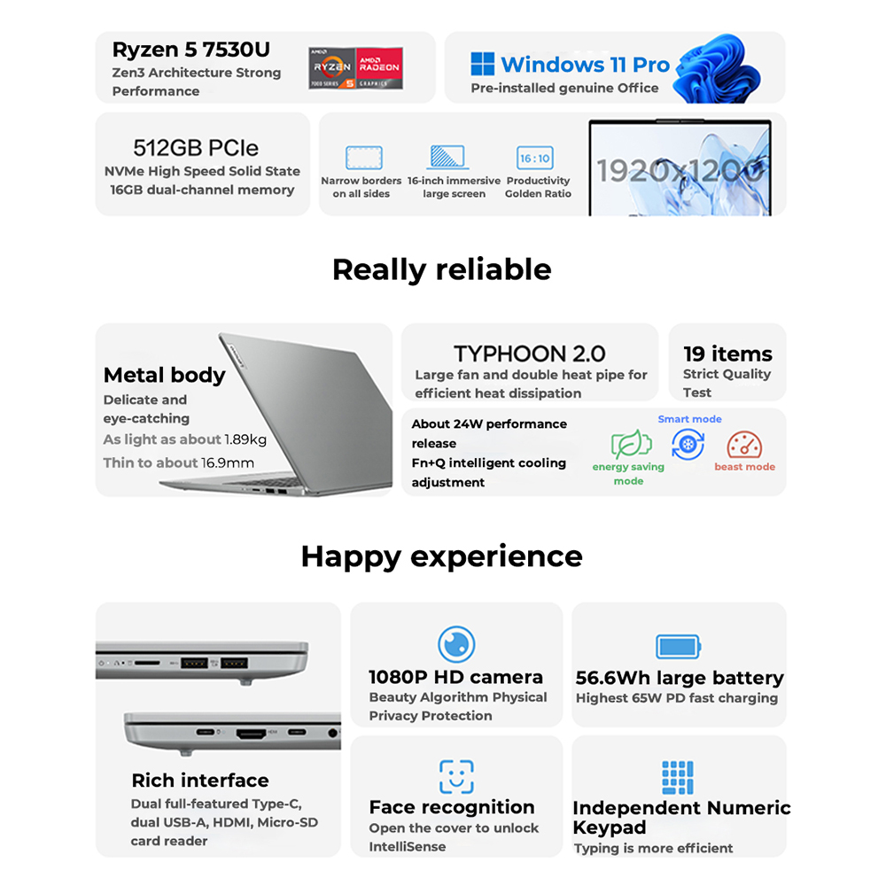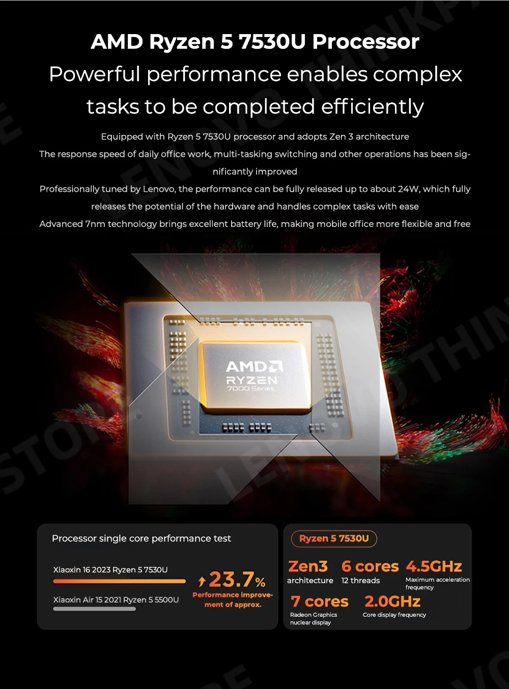 AMD Ryzen 5 7530U Processor Powerful performance enables complex tasks to be completed efficiently