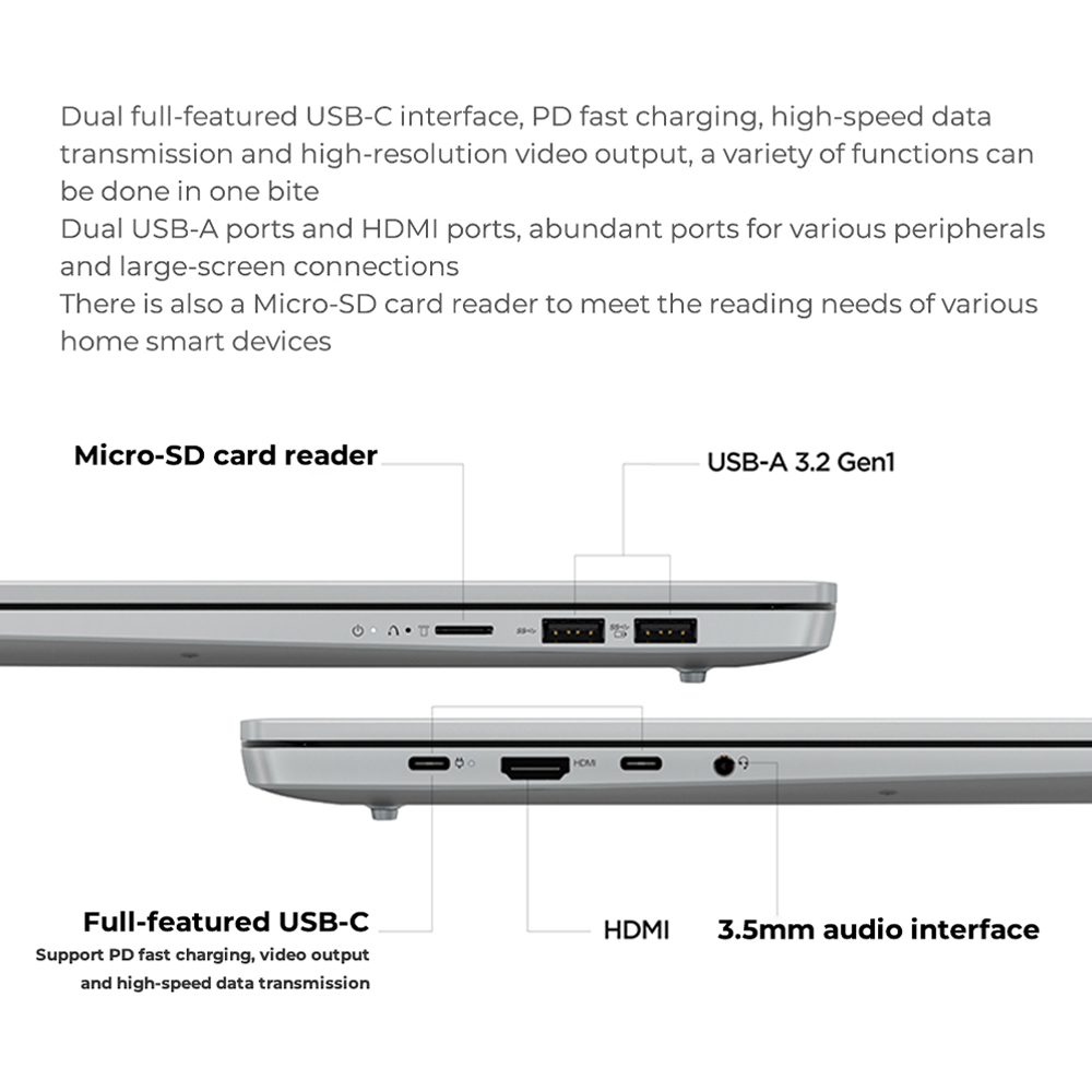 Dual full-featured USB-C interface, PD fast charging, high-speed data transmission and high-resolution video output, a variety of functions can be done in one bite.Dual USB-A ports and HDMI ports, abundant ports for various peripherals