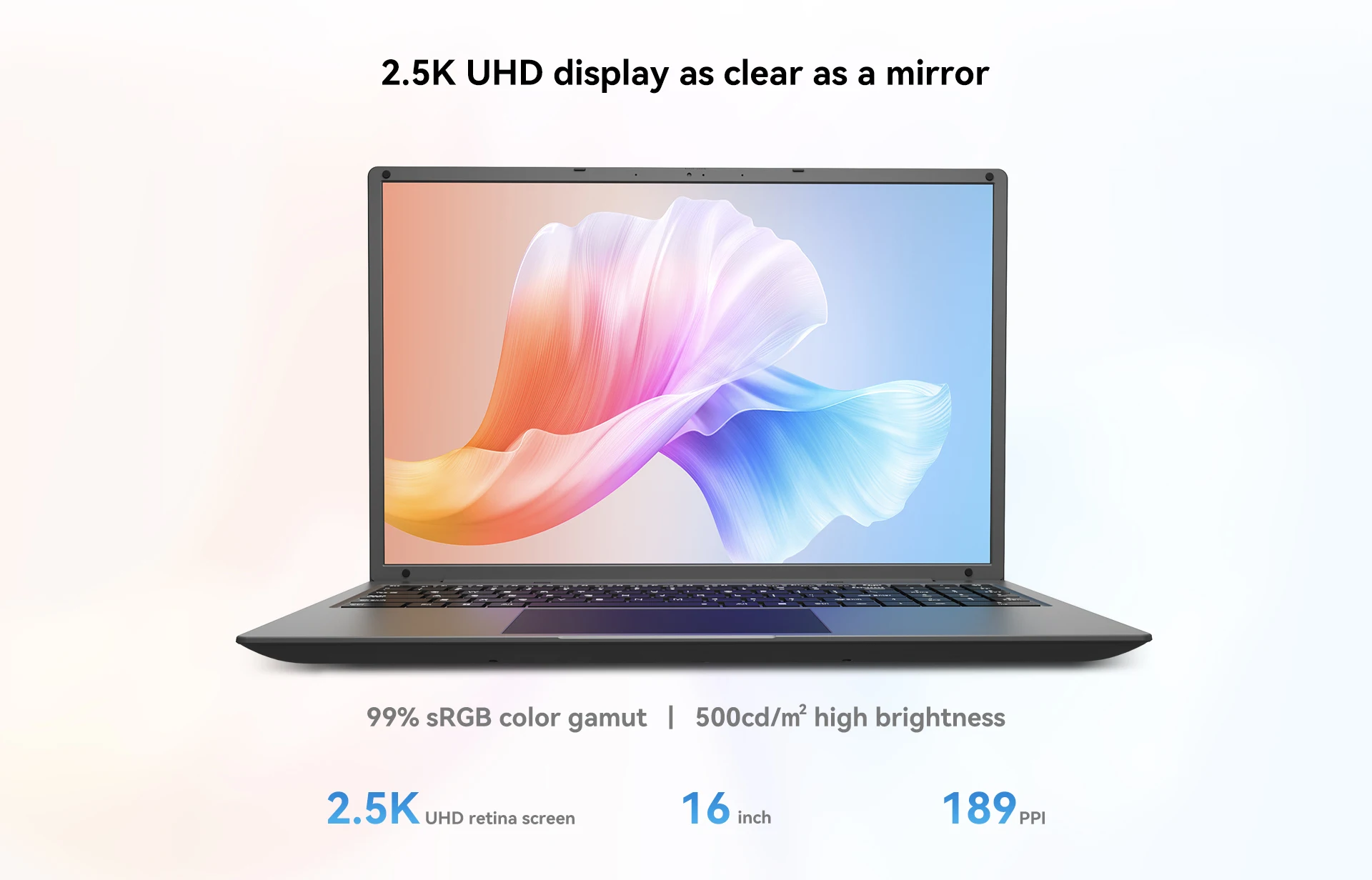 16 inch 2.5K UHD retina screen,189 PPI,99% sRGB color gamut,500cd/㎡ high brightness