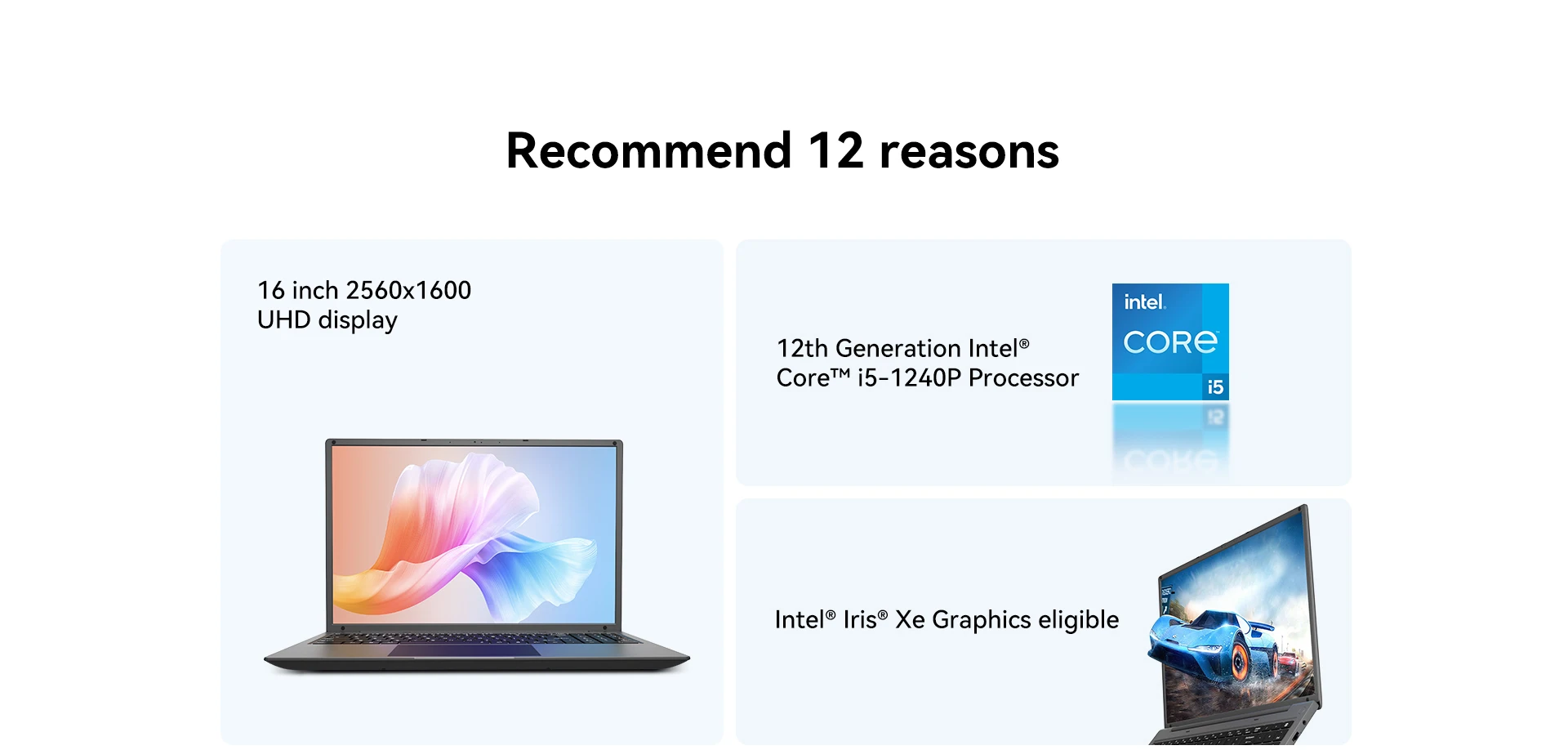 Core™ i5-1240P processor,12 cores 16 threads,4.4GHz ultra-high frequency,12 MB Intel® Smart Cache