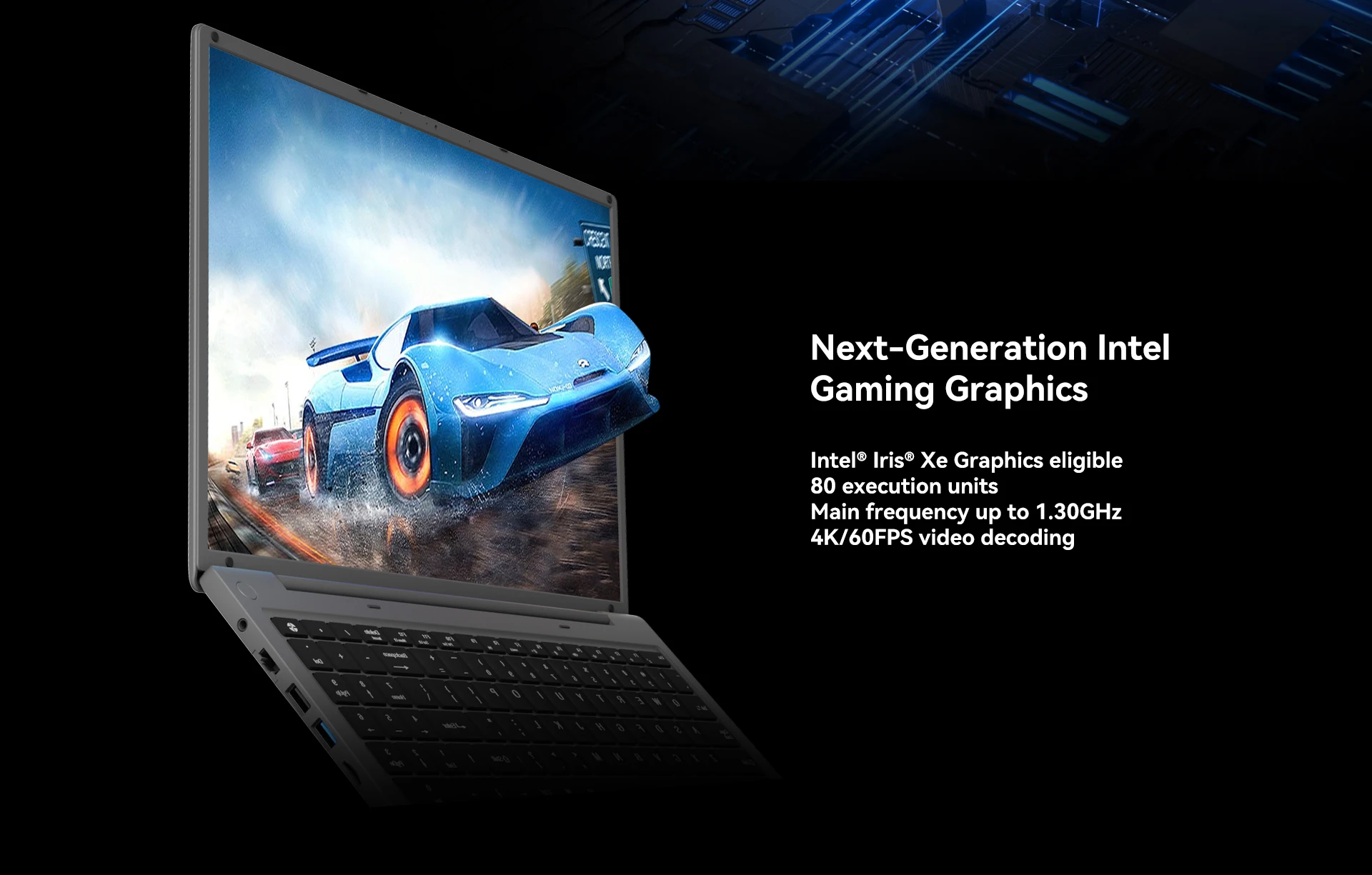 Intel® Iris® Xe Graphics eligible,80 execution units,main frequency up to 1.30GHz,4K/60FPS video decoding