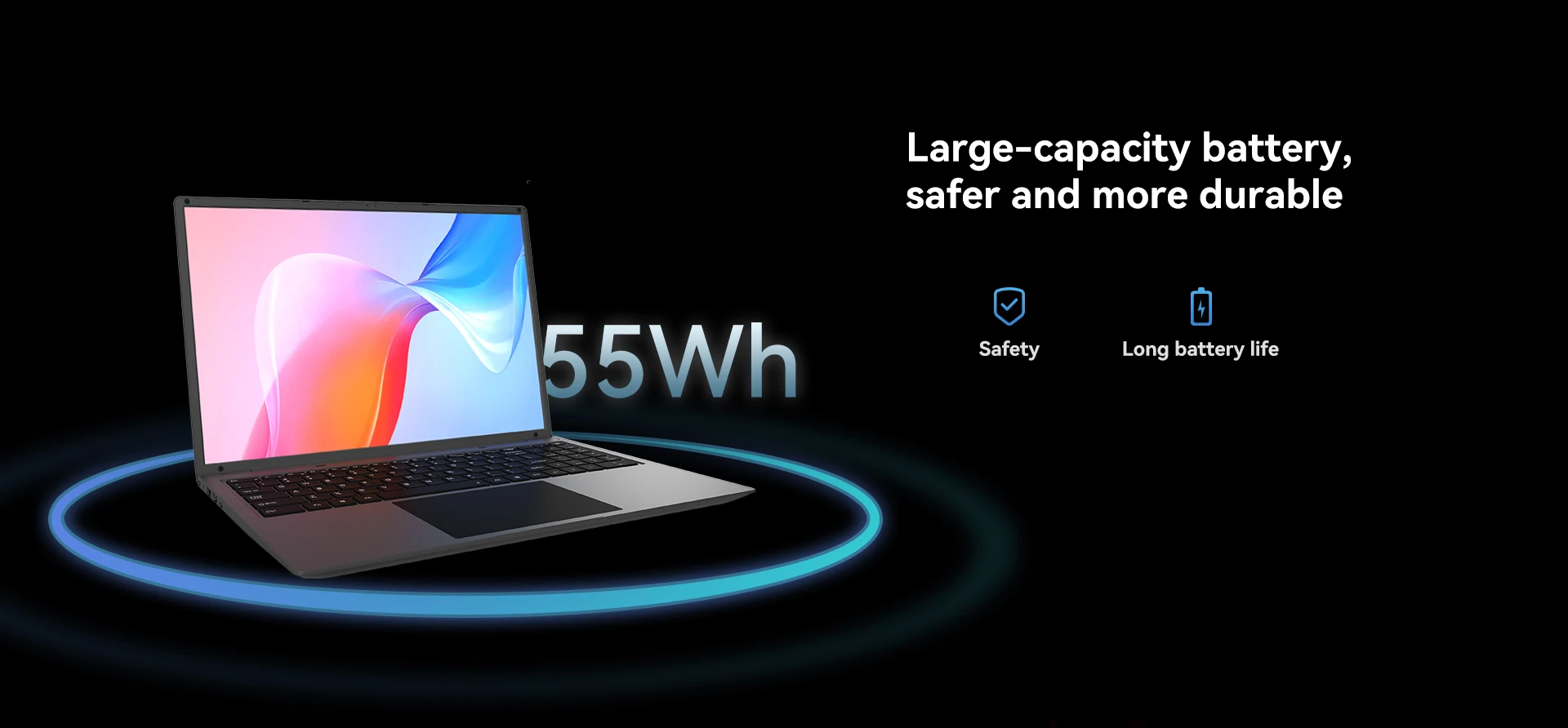 55 Wh battery,long battery life,safer and more durable