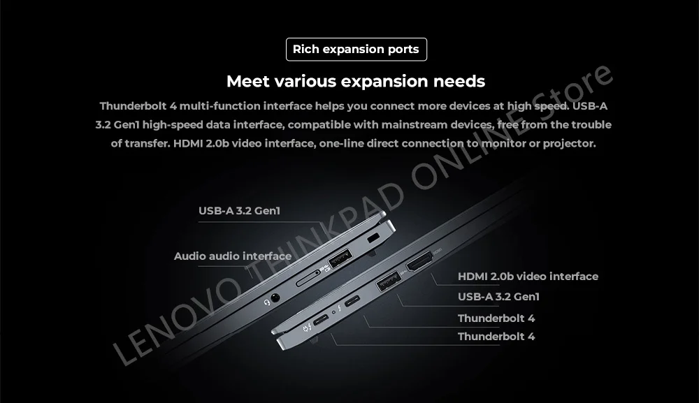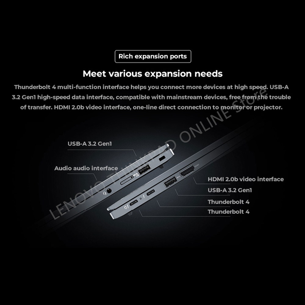 Thunderbolt 4 multi-function interface helps you connect more devices at high speed.USB-A3.2 Gen1 high-speed data interface, compatible with mainstream devices, free from the troubleof transfer.HDMI 2.0b video interface, one-line direct connection to monitor or projector.
