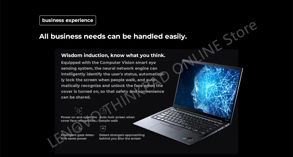 Equipped with the Computer Vision smart eyesensing system, the neural network engine canintelligently identify the user's status, automatical-ly lock the screen when people walk, and automatically recognize and unlock the face when thecover is turned on, so that safety and conveniencecan be shared.