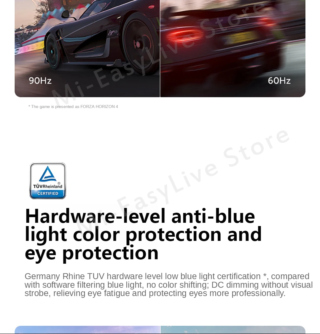90Hz refresh rate (default factory value), FN+S can be switched between 90Hz and 60Hz, 100% sRGB color gamut (typical value), support DC dimming,