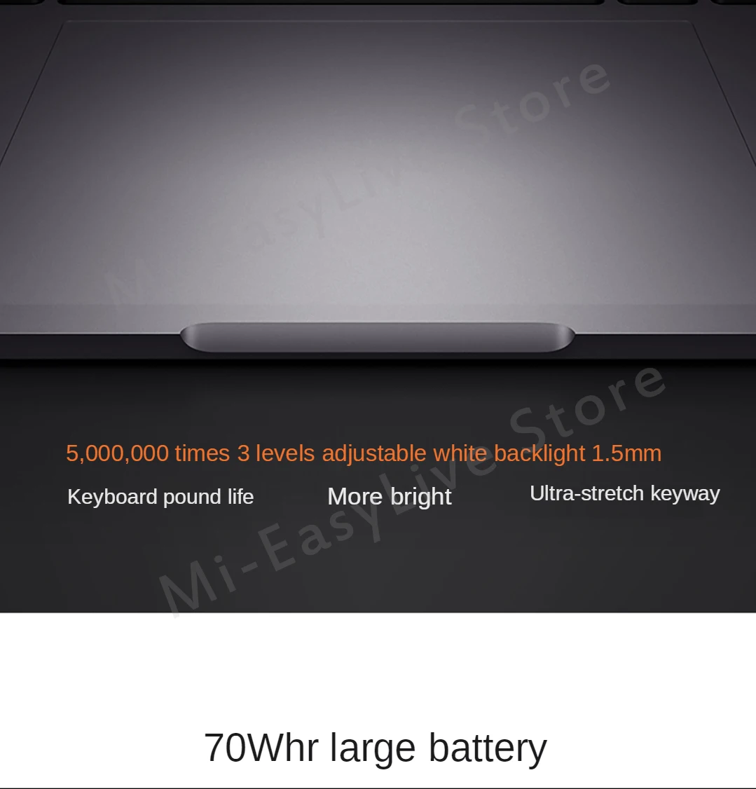 Full-size three-level backlit keyboard, 1.5mm keystroke