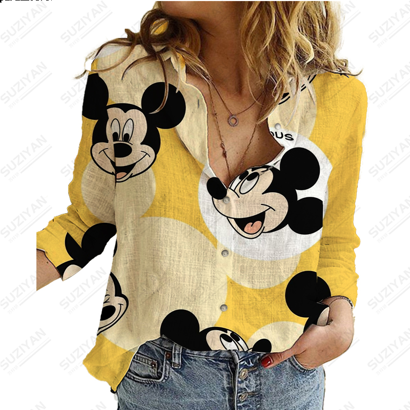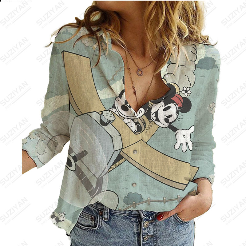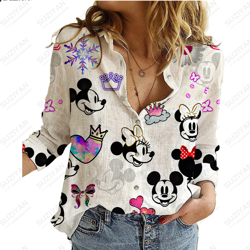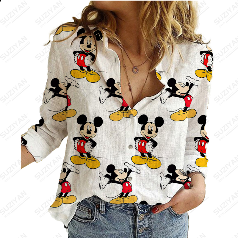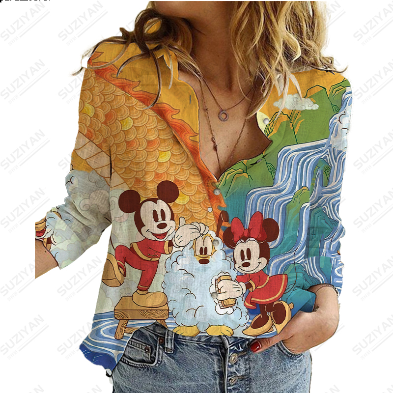 Disney New Women's Long Sleeve Shirt Loose Button Cardigan Fragmented Flower Style 3D Printed Women's Long Sleeve Chiffon Shirt