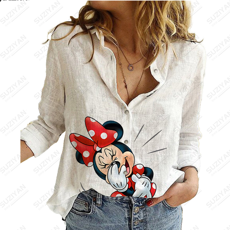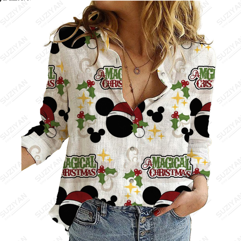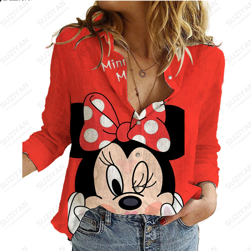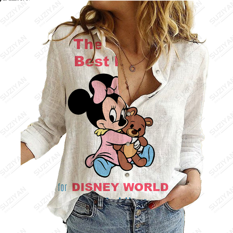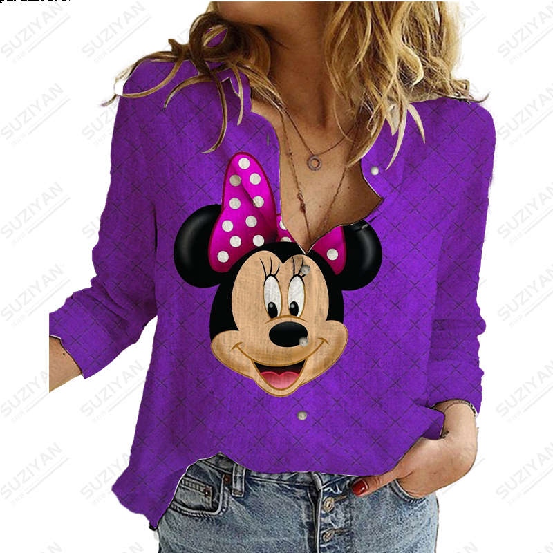 Disney New Women's Long Sleeve Shirt Loose Button Cardigan Fragmented Flower Style 3D Printed Women's Long Sleeve Chiffon Shirt