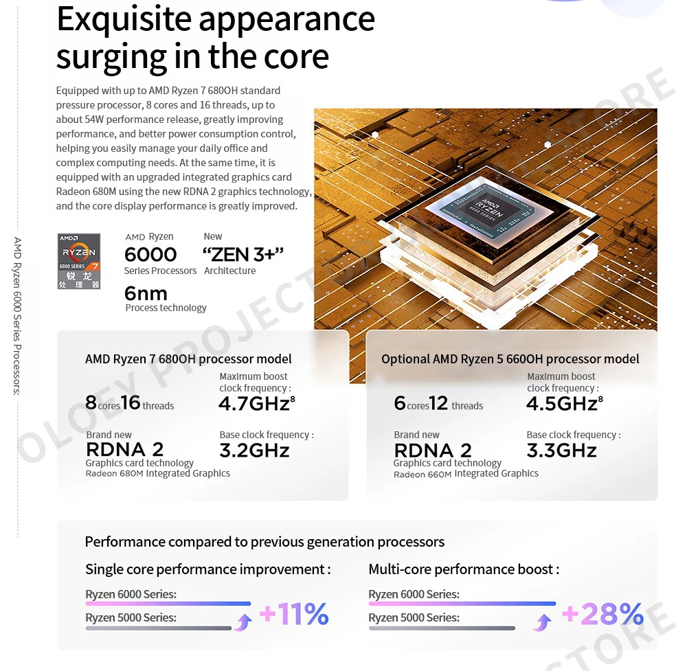 CPU Model: AMD R5 6600H/AMD R7 6800H