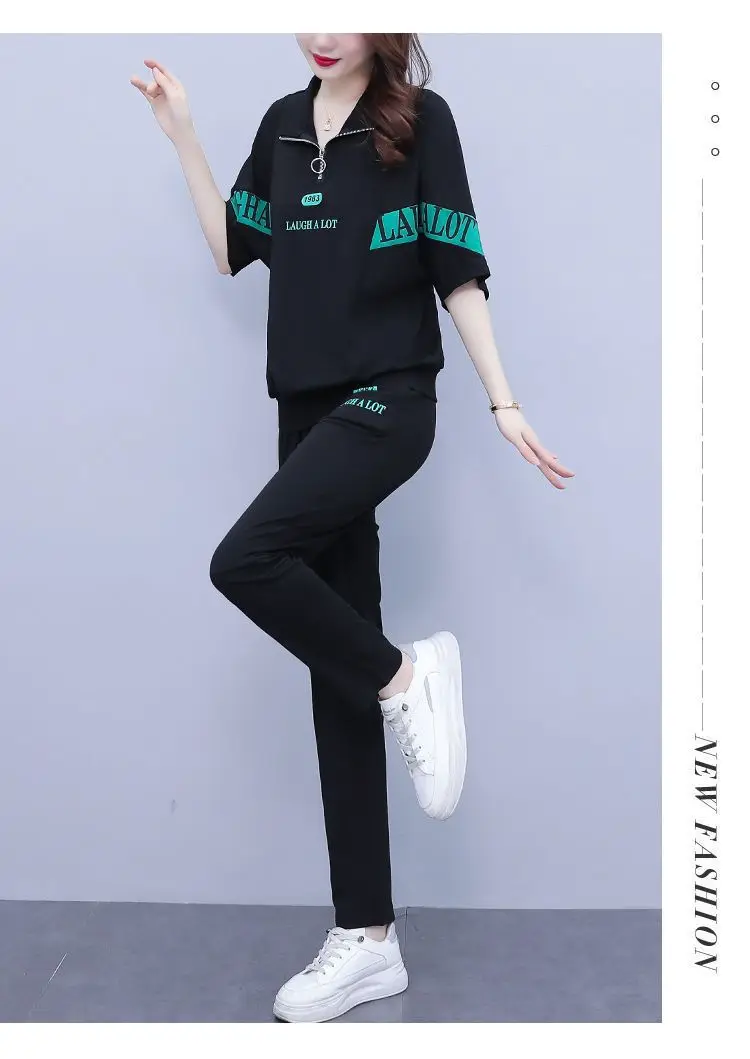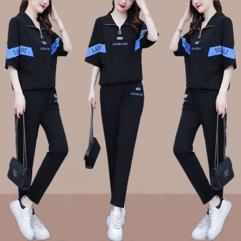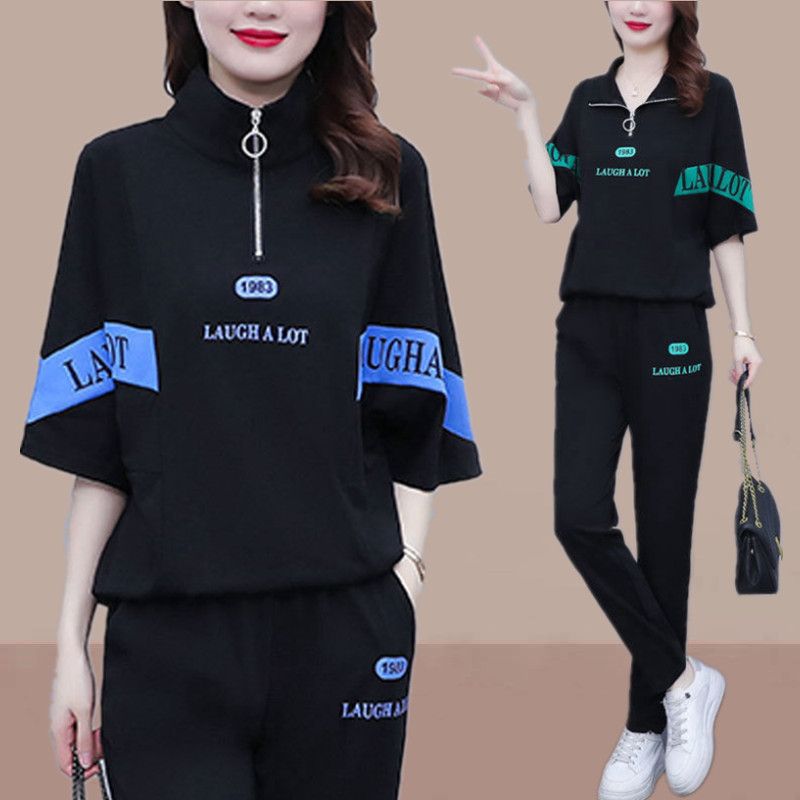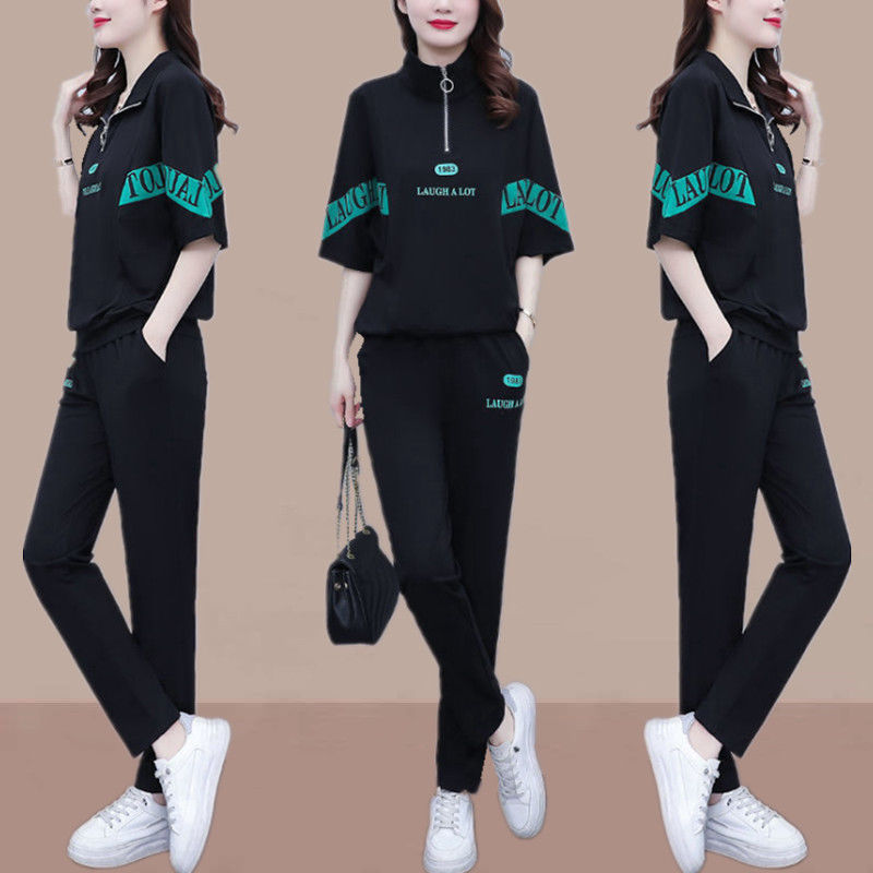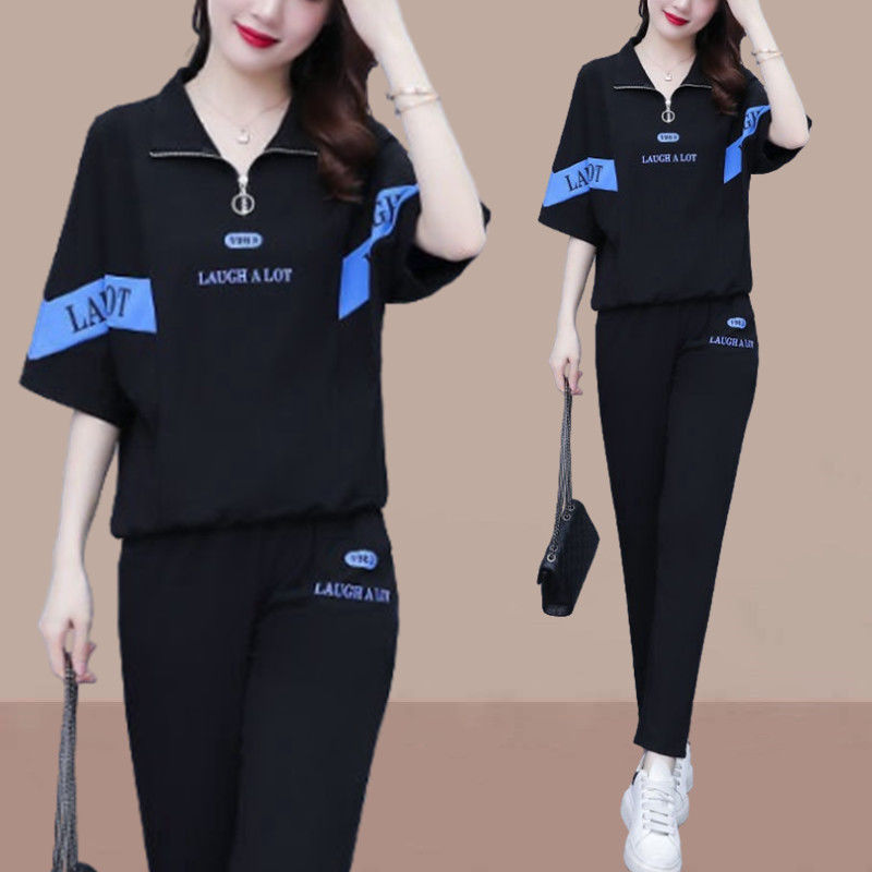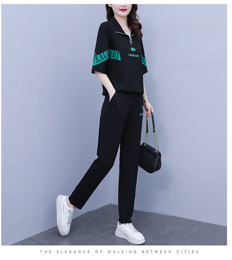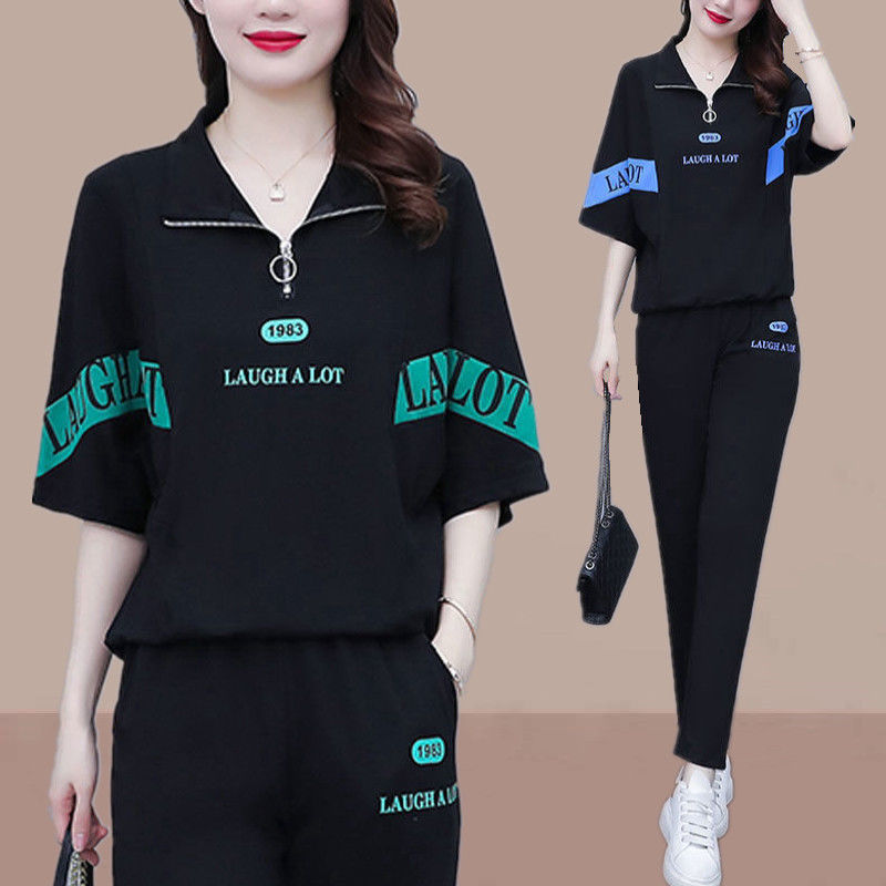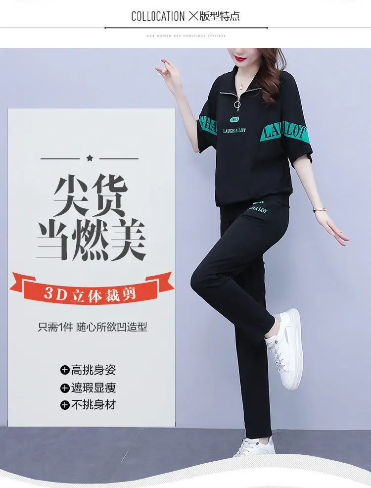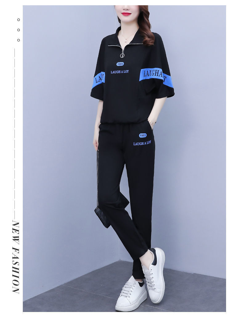 Summer sports suit women's large size women's fat sister new Korean version loose everything temperament casual two-piece set