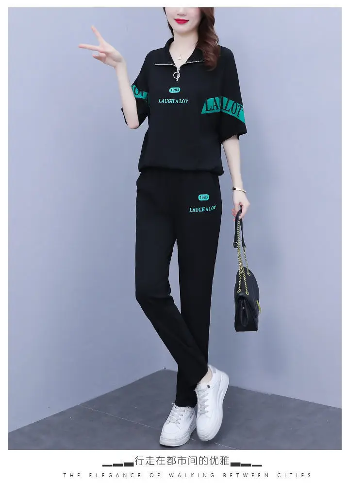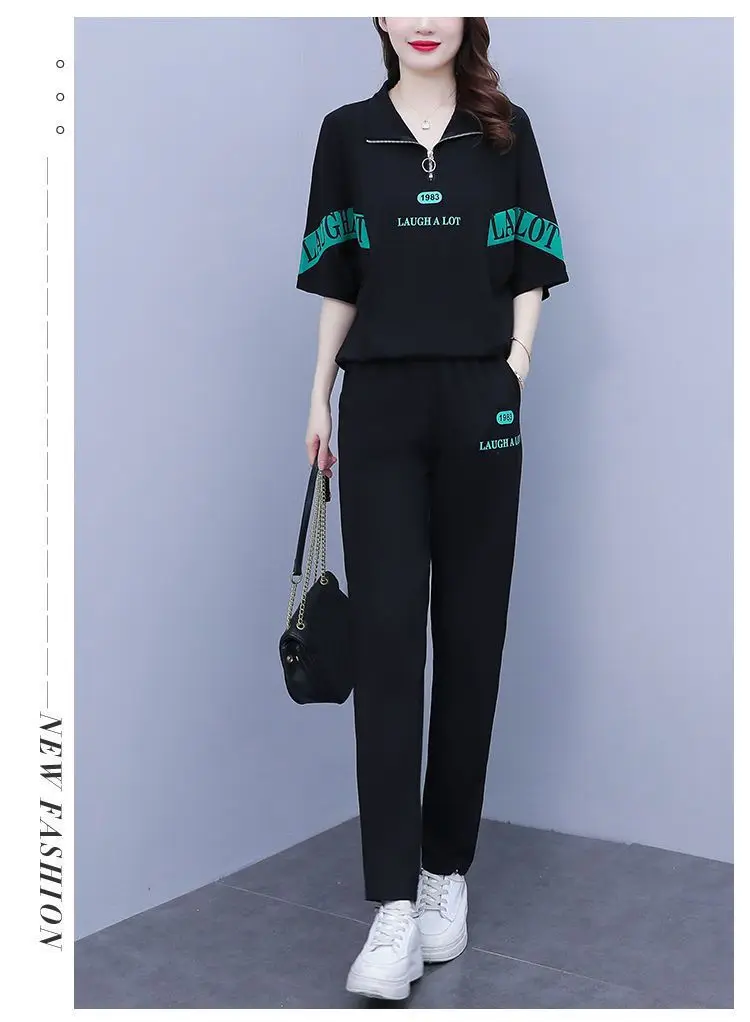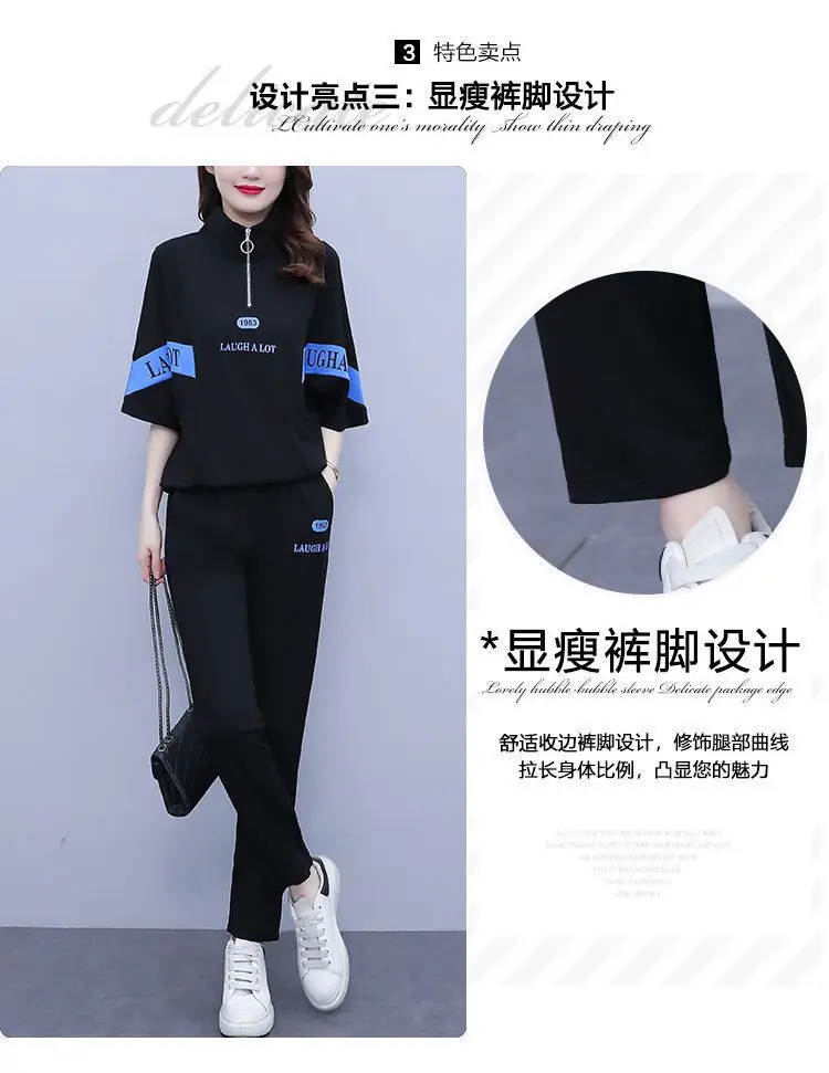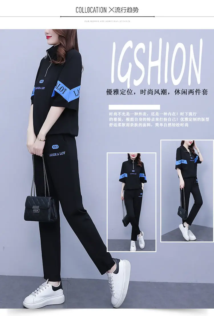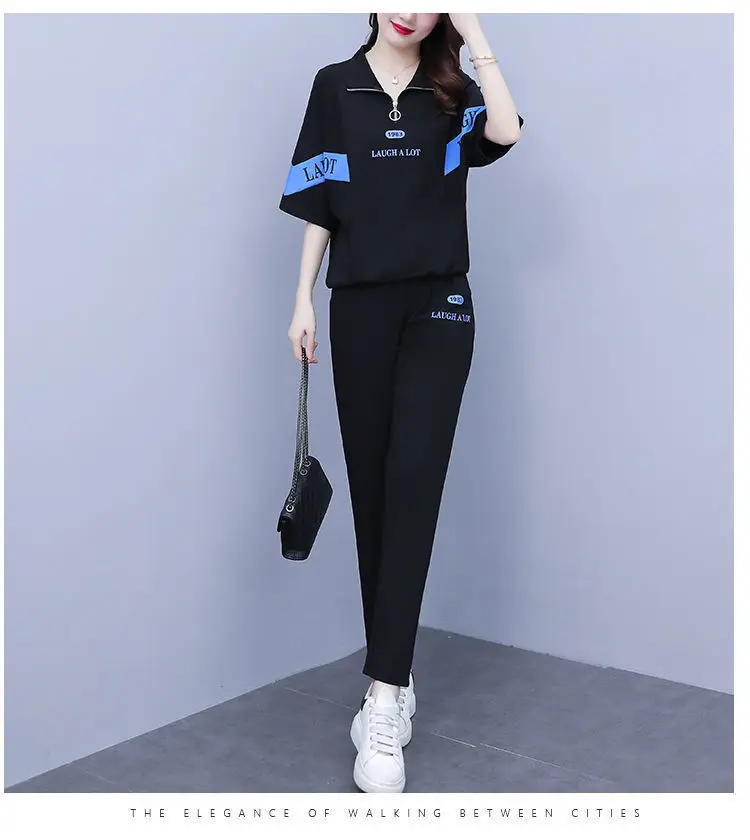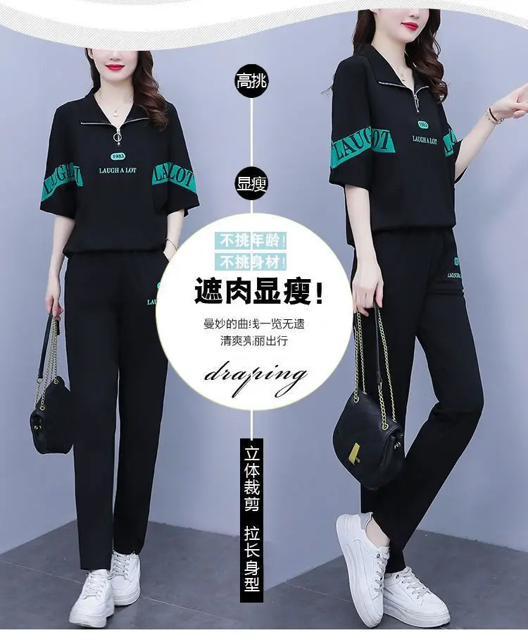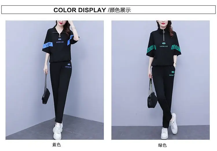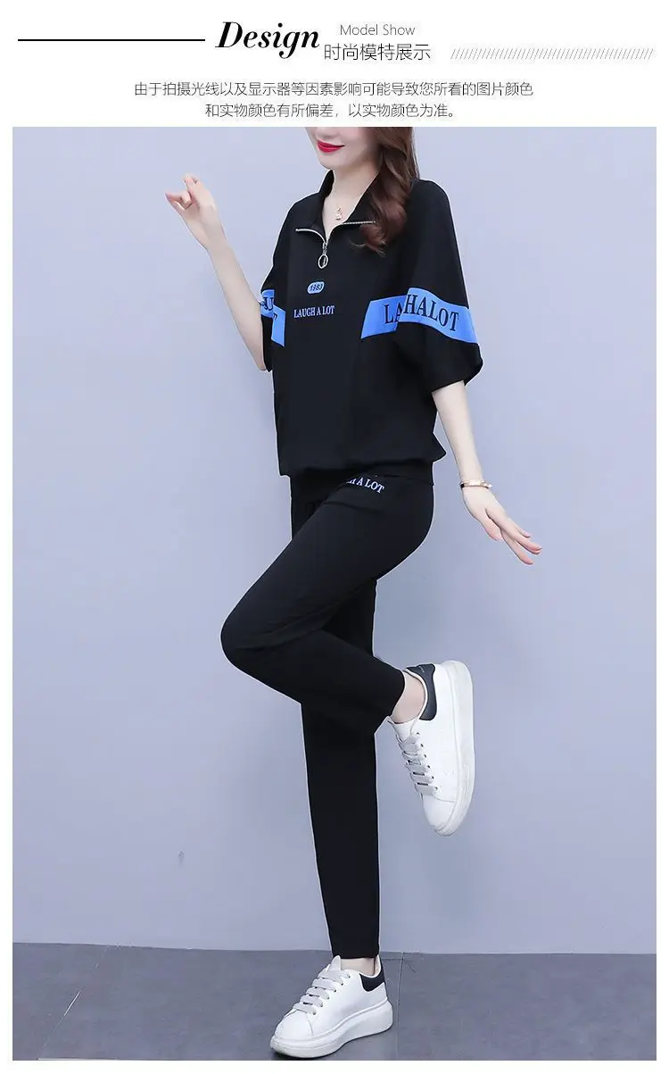 Summer sports suit women's large size women's fat sister new Korean version loose everything temperament casual two-piece set