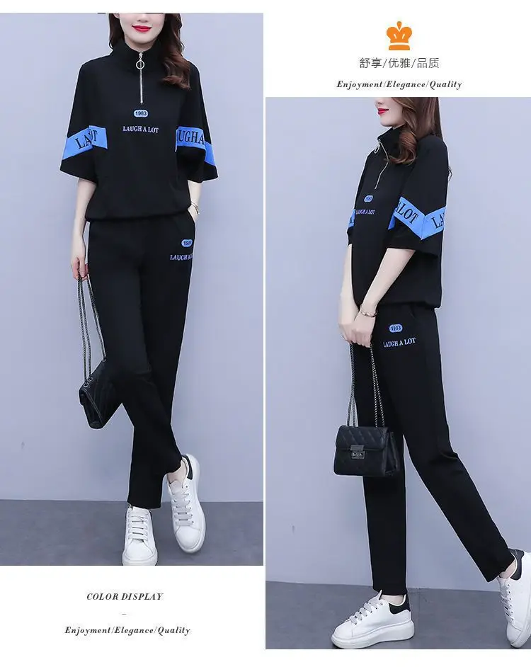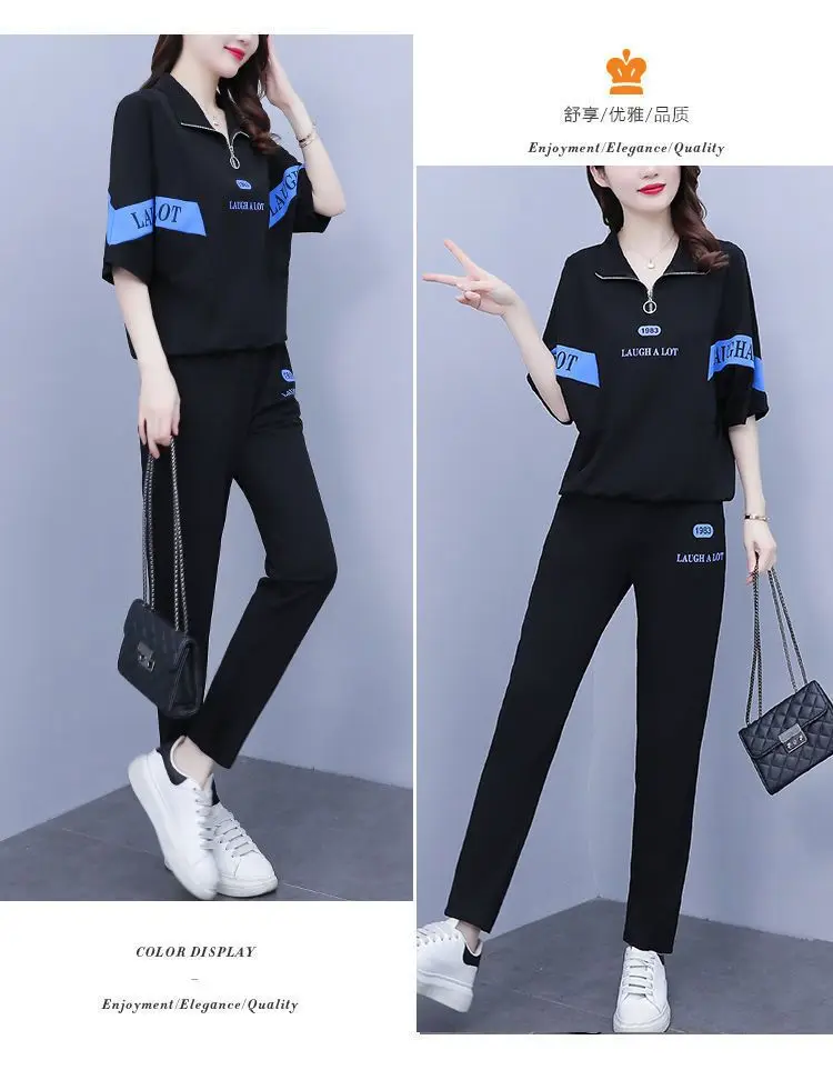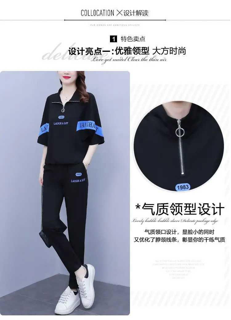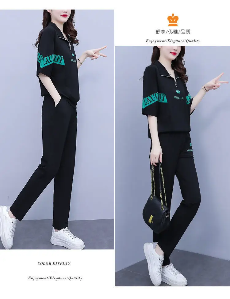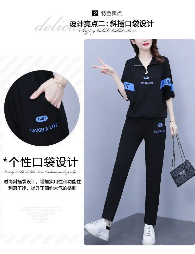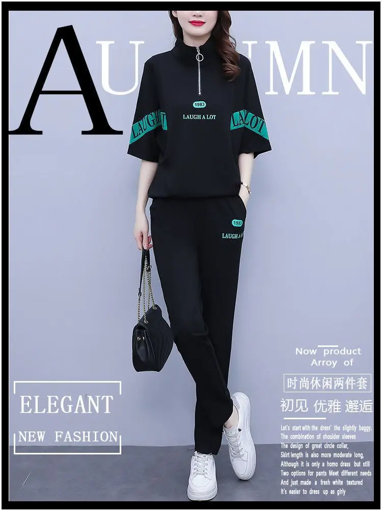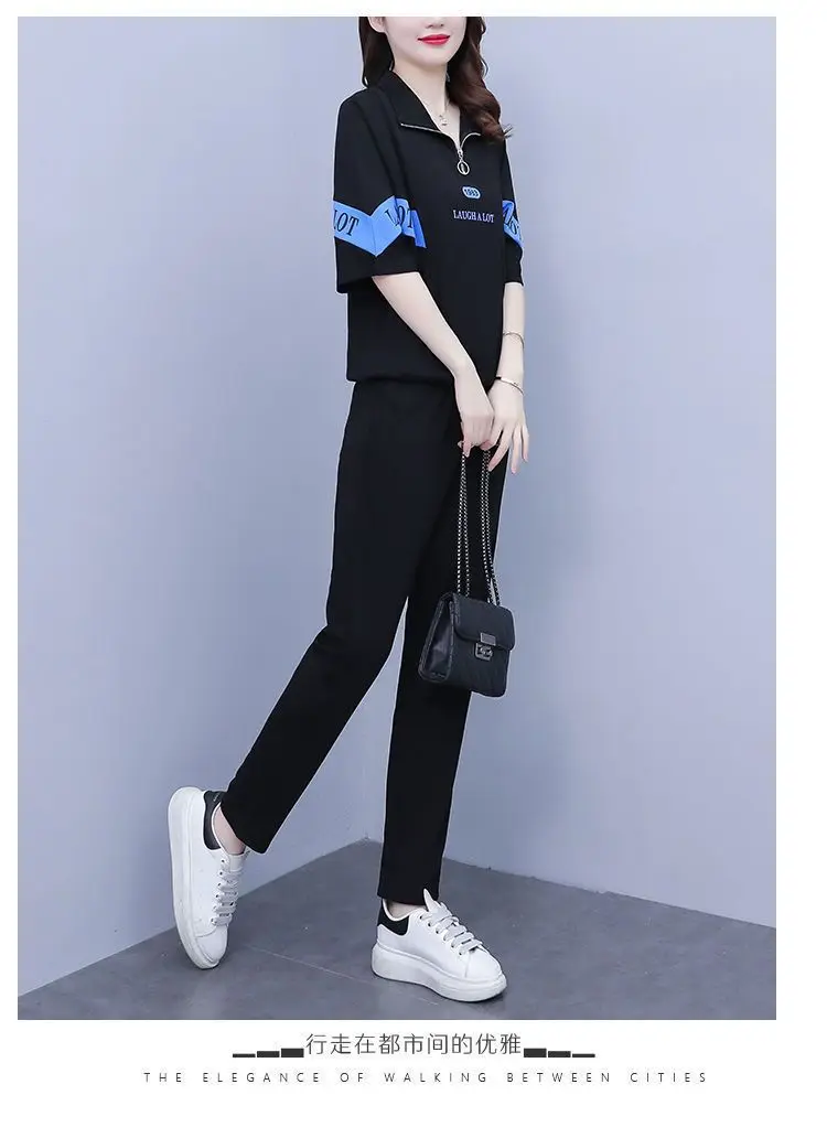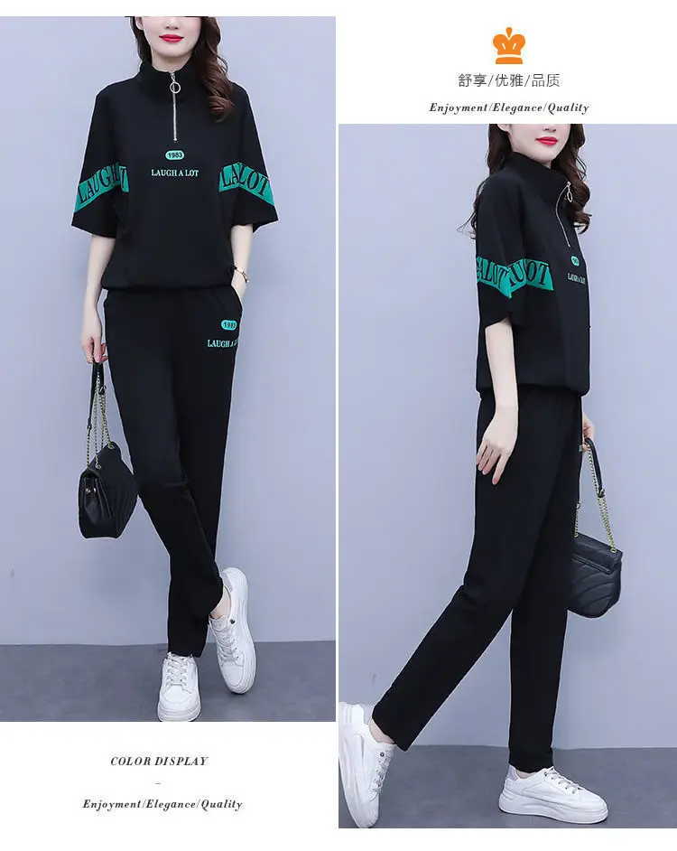 Summer sports suit women's large size women's fat sister new Korean version loose everything temperament casual two-piece set