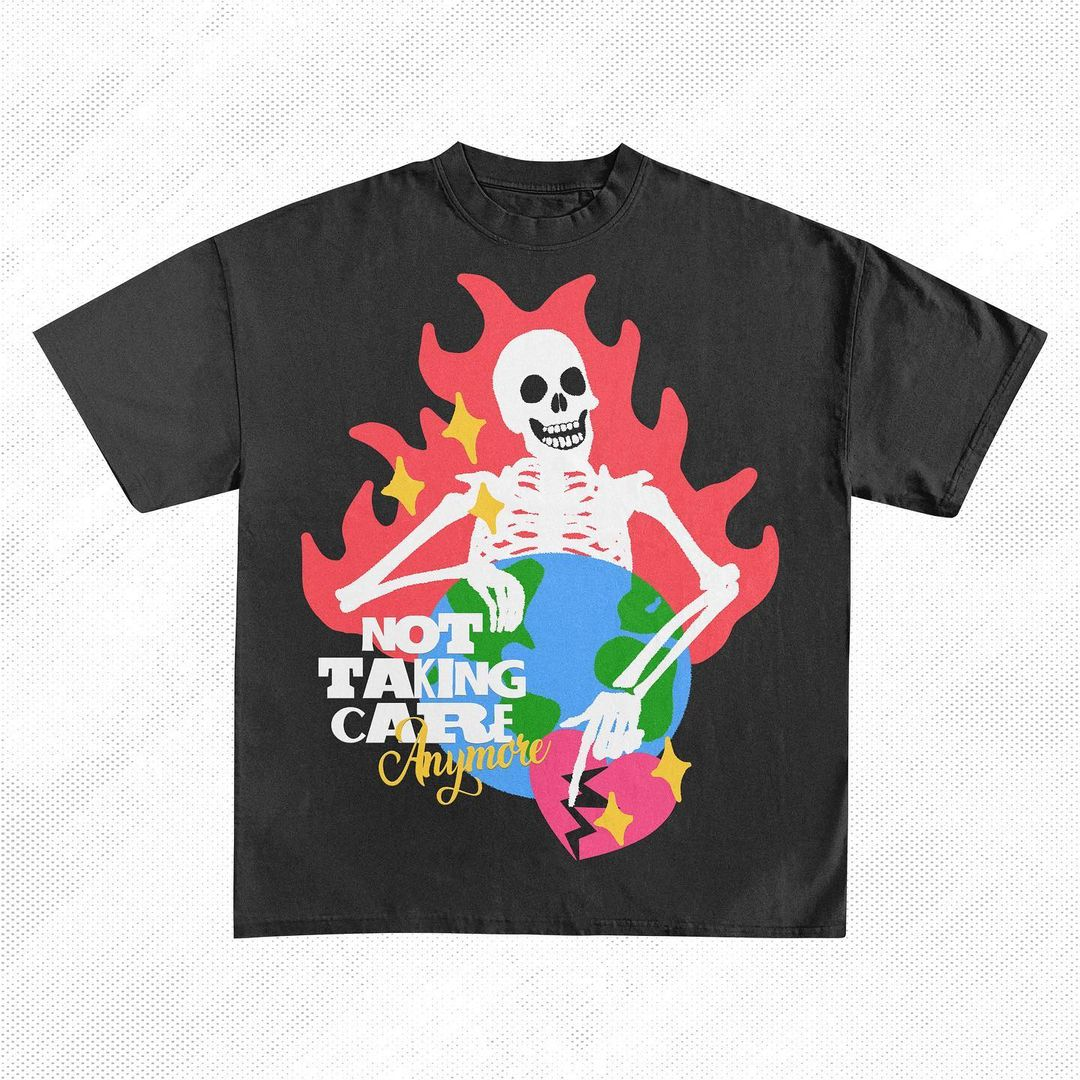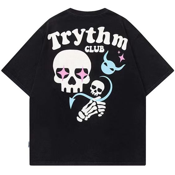 2023 INS Summer Fun Funny Gothic Skull Text Printing Short Sleeve Y2K Men and Women Casual Breathable Loose Personality T-shirt