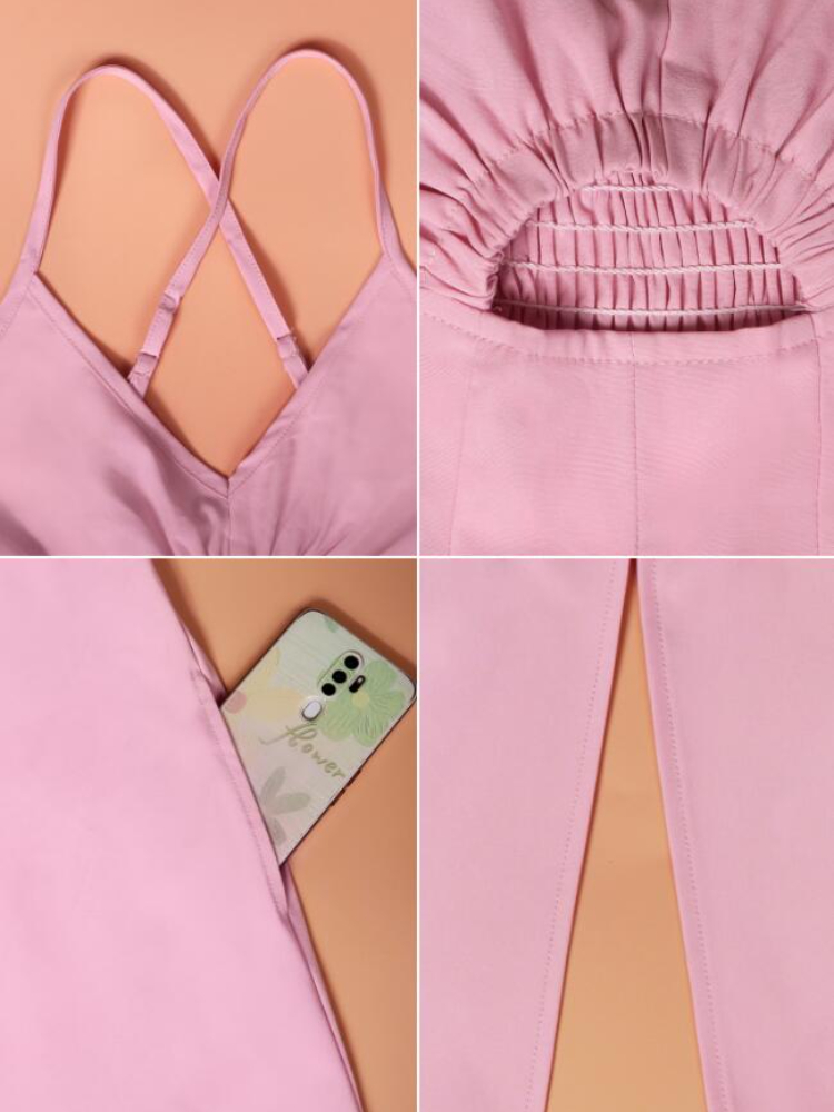 Dress for Women New Strap Dress 2023 Summer Sexy Hollow Out Split Solid Color Mid Length Dress Pocket Decoration Women Clothing
