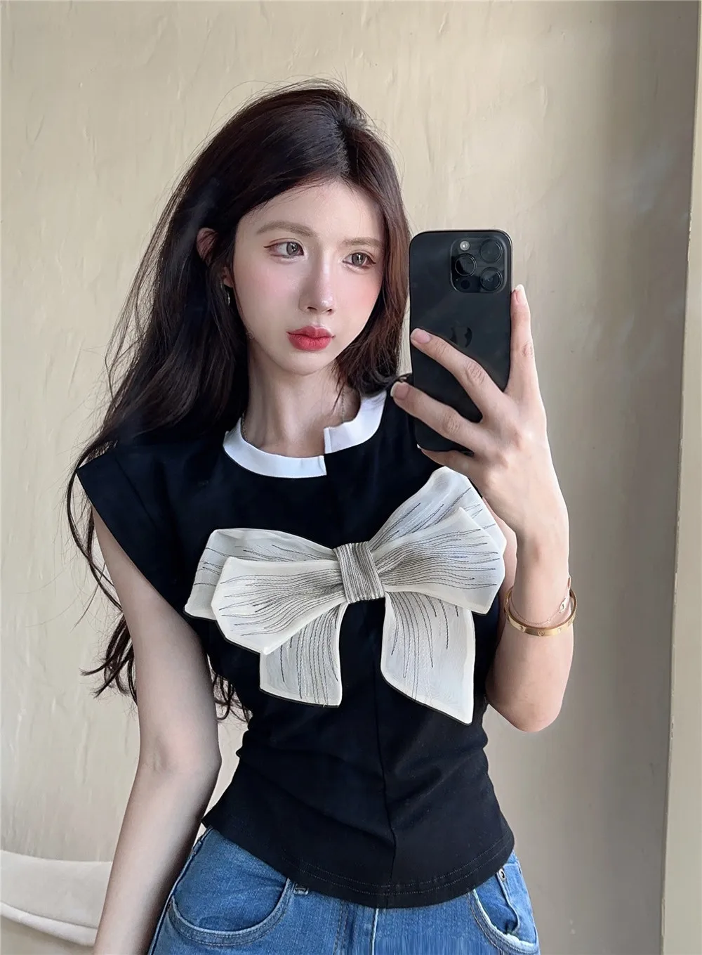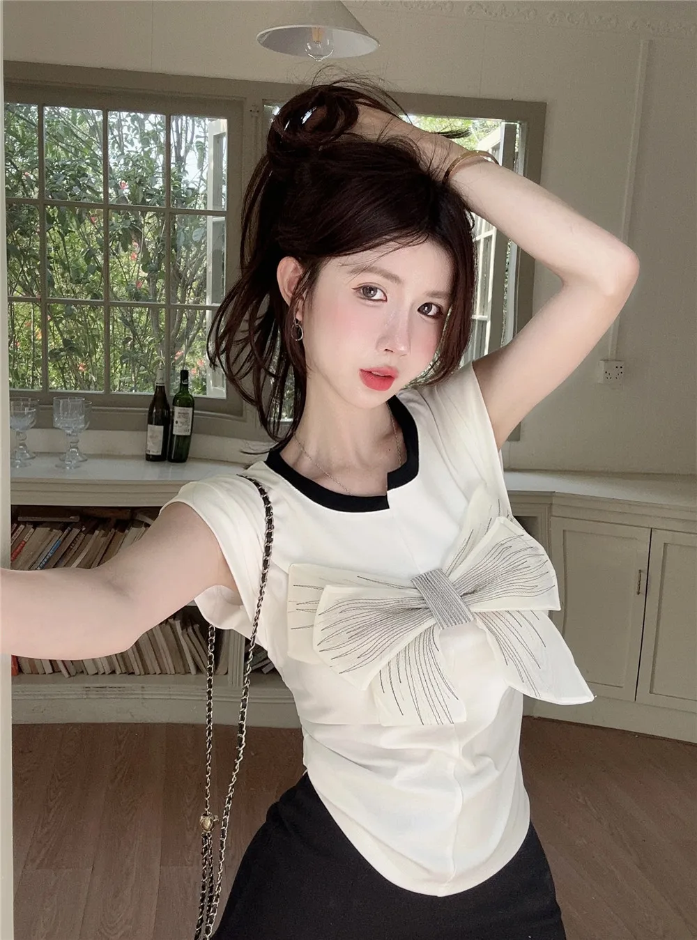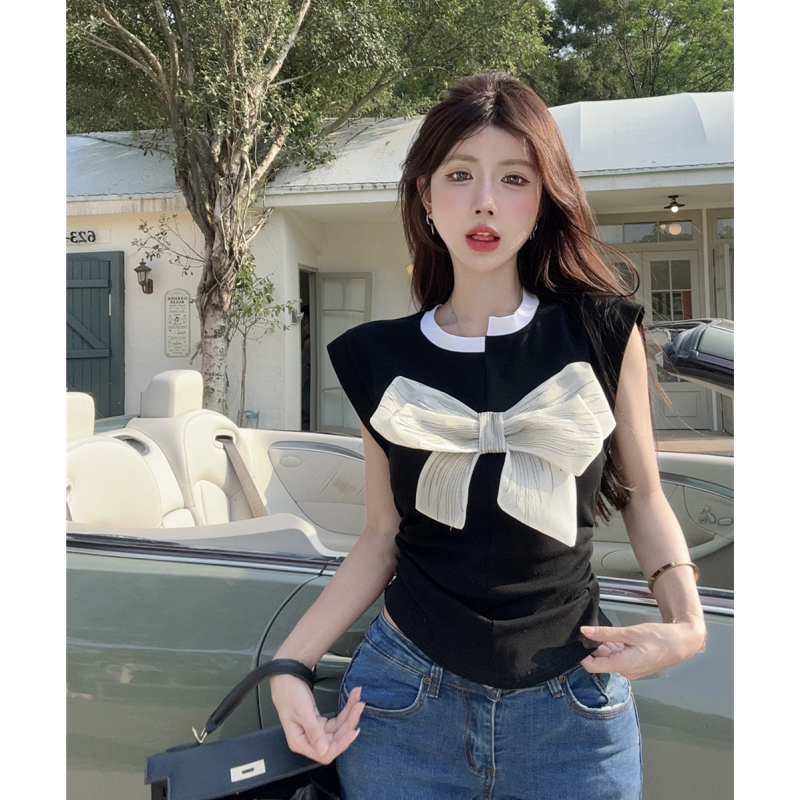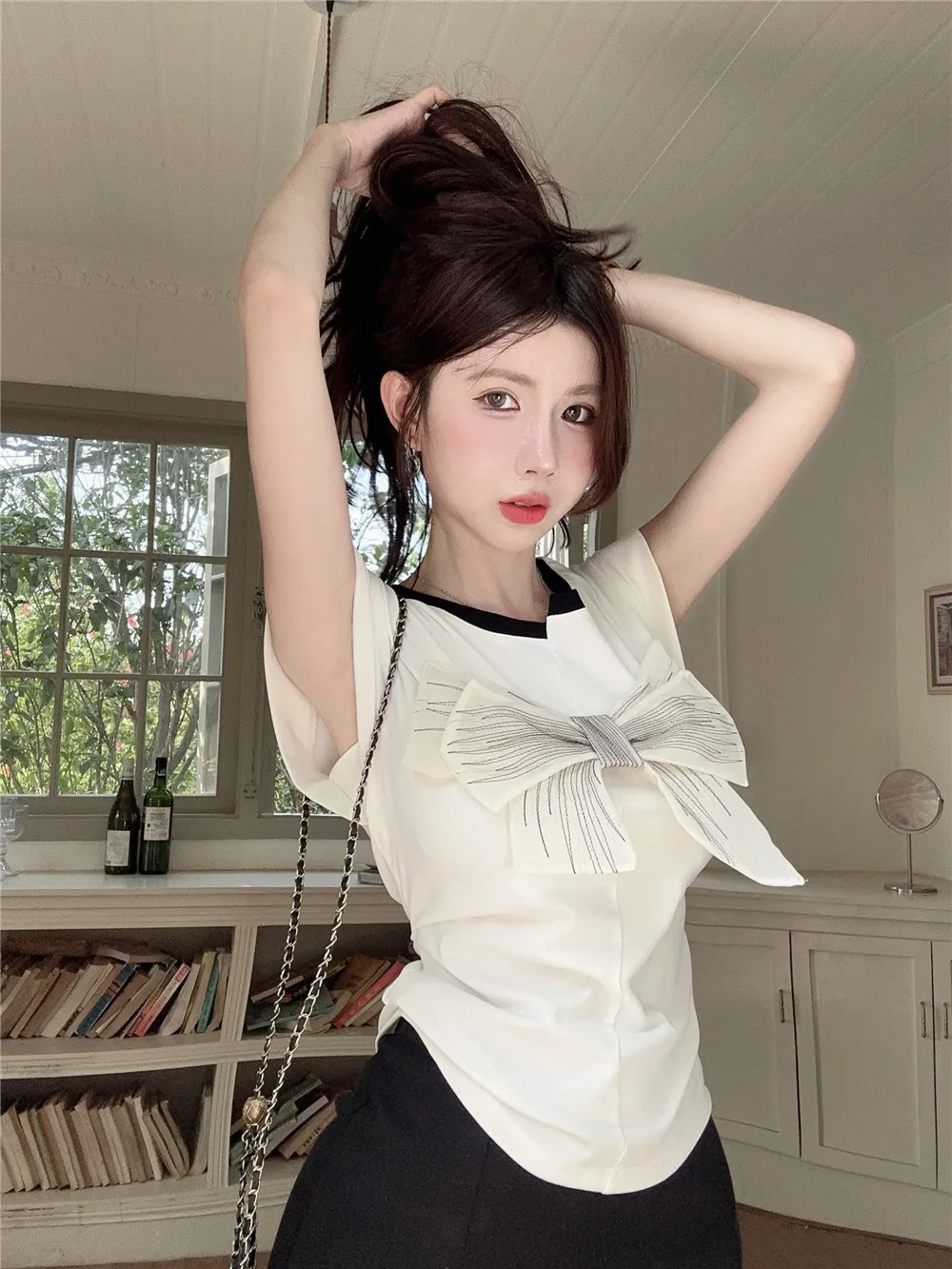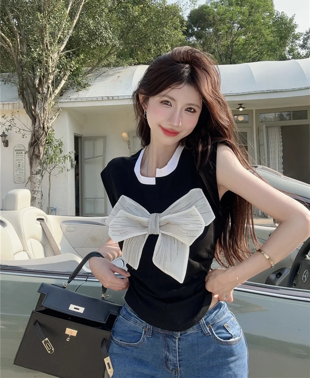 T Shirt For Women Short Sleeve Solid White Bow Personalized Trend Chic Vintage Fashion Summer Female Clothing Versatile Y2K Tops