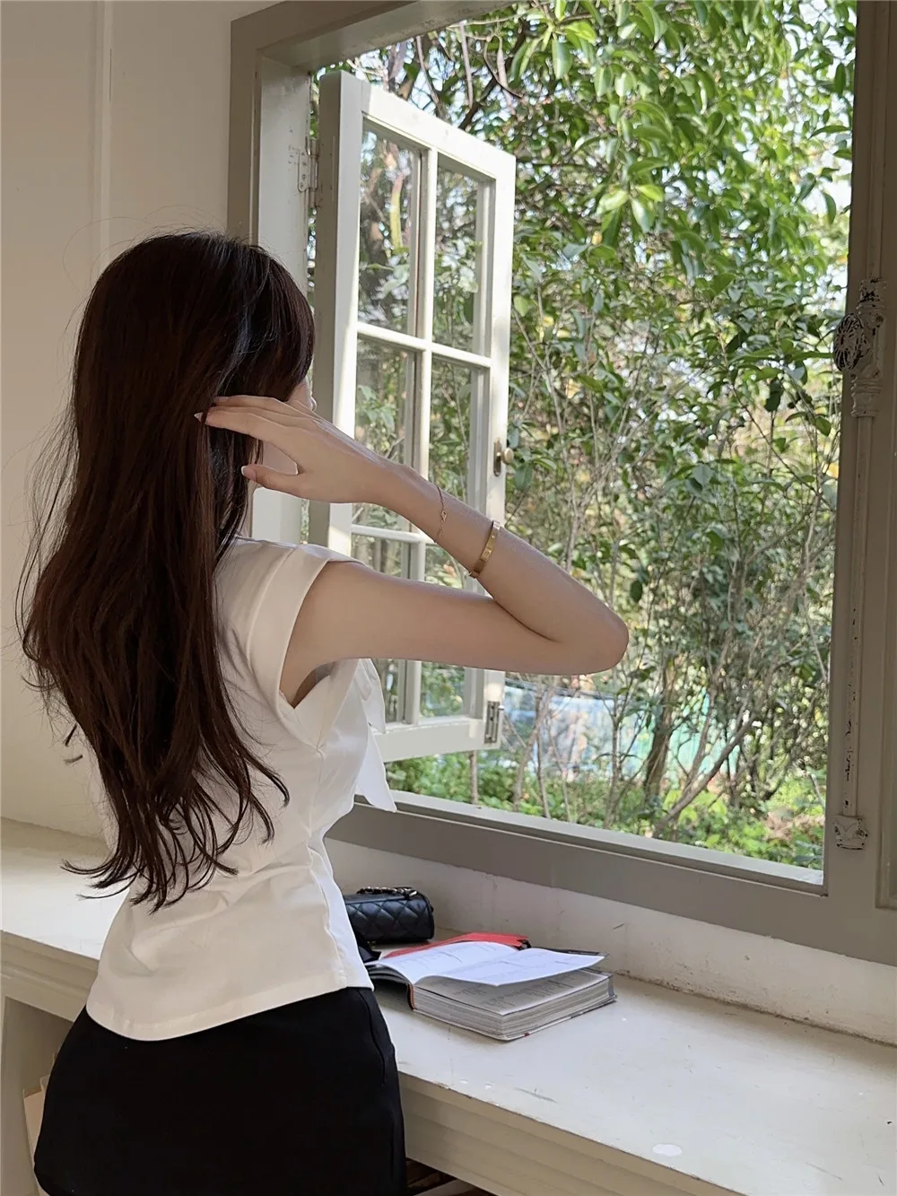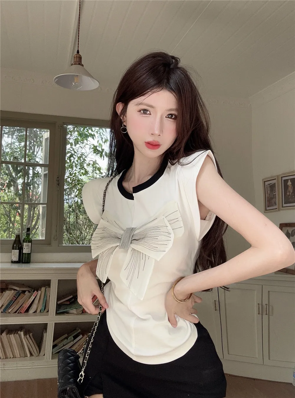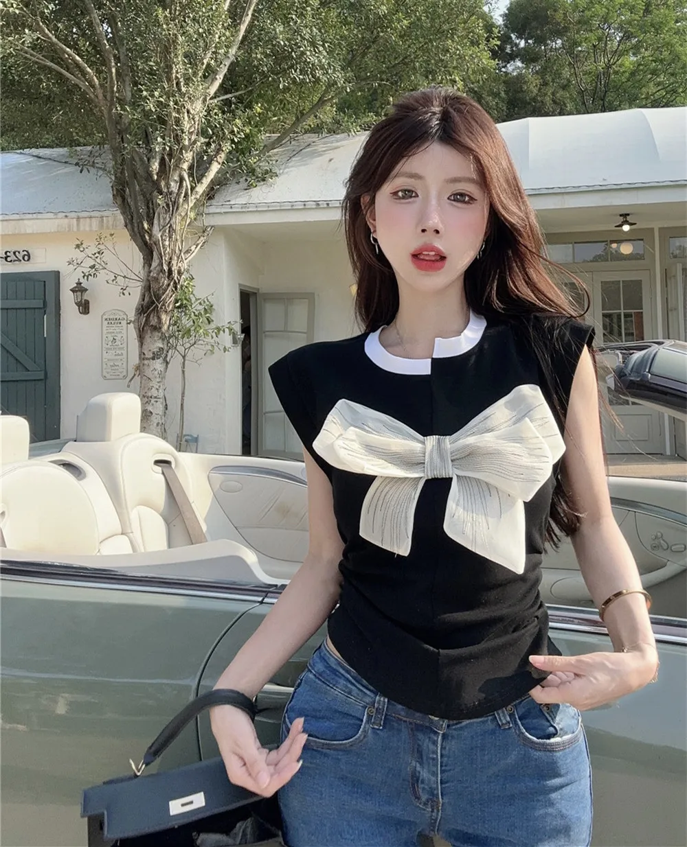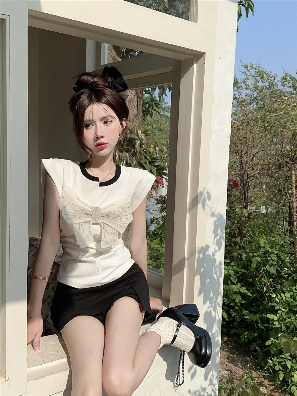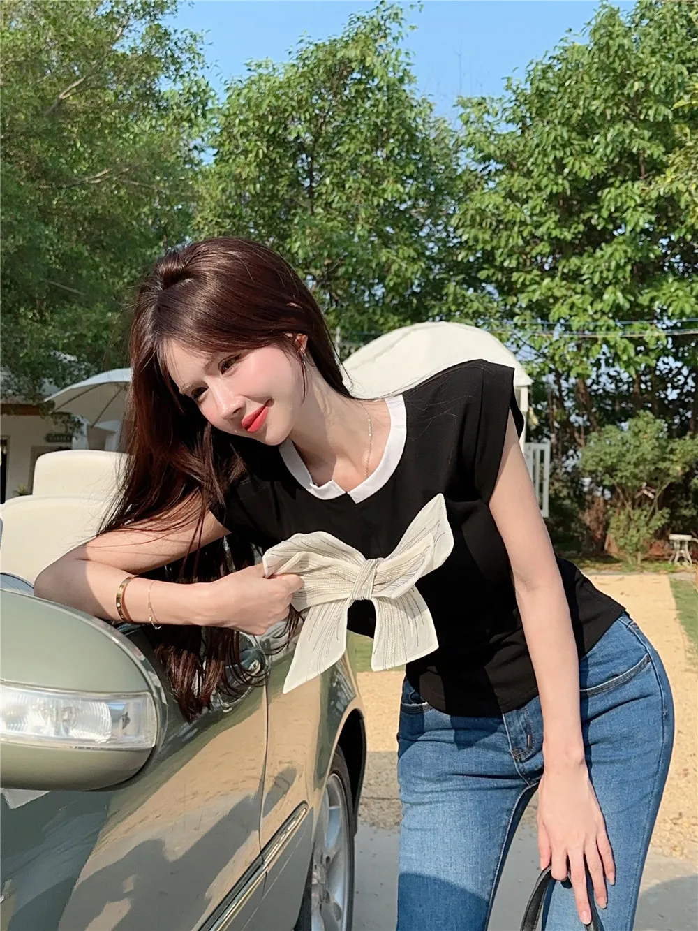 T Shirt For Women Short Sleeve Solid White Bow Personalized Trend Chic Vintage Fashion Summer Female Clothing Versatile Y2K Tops