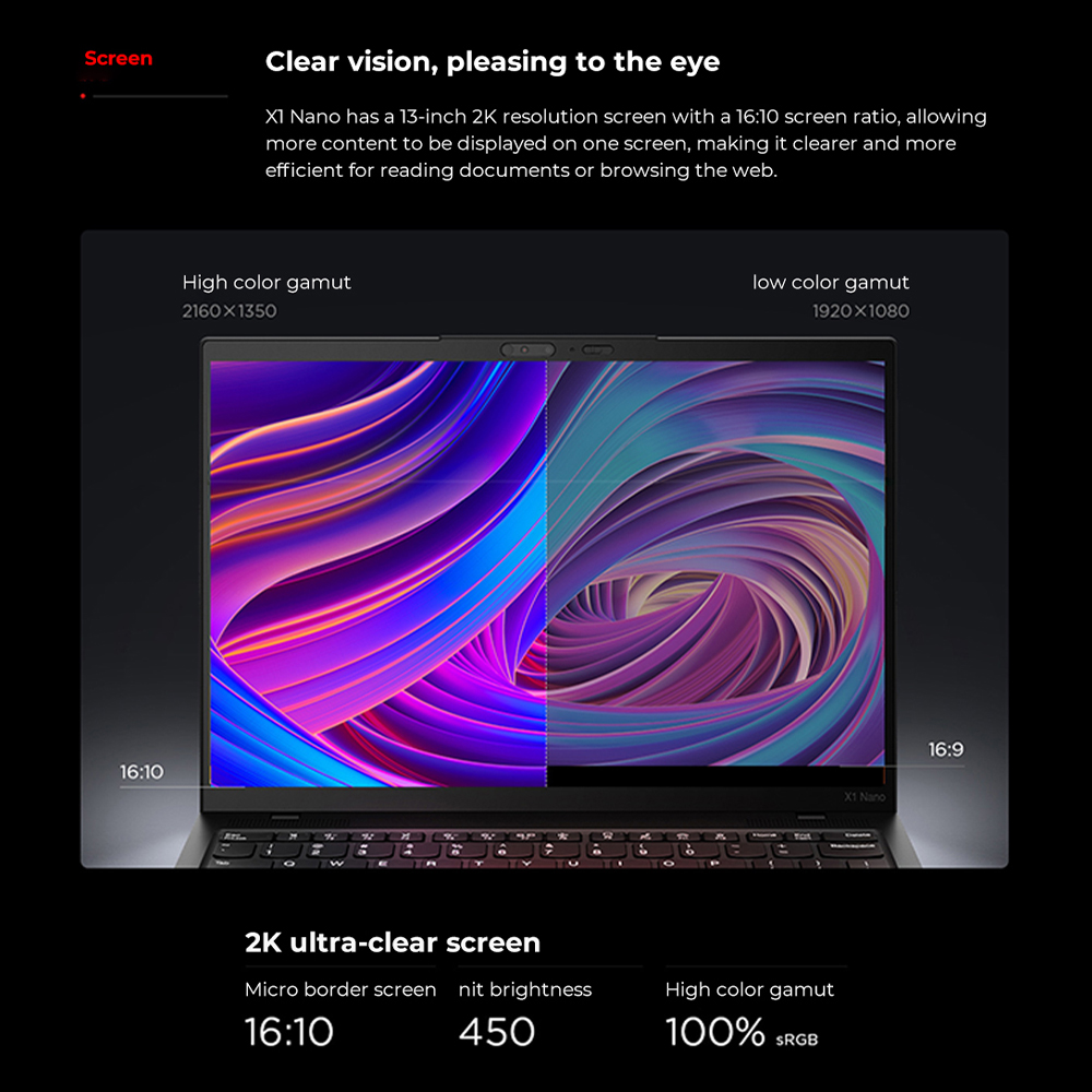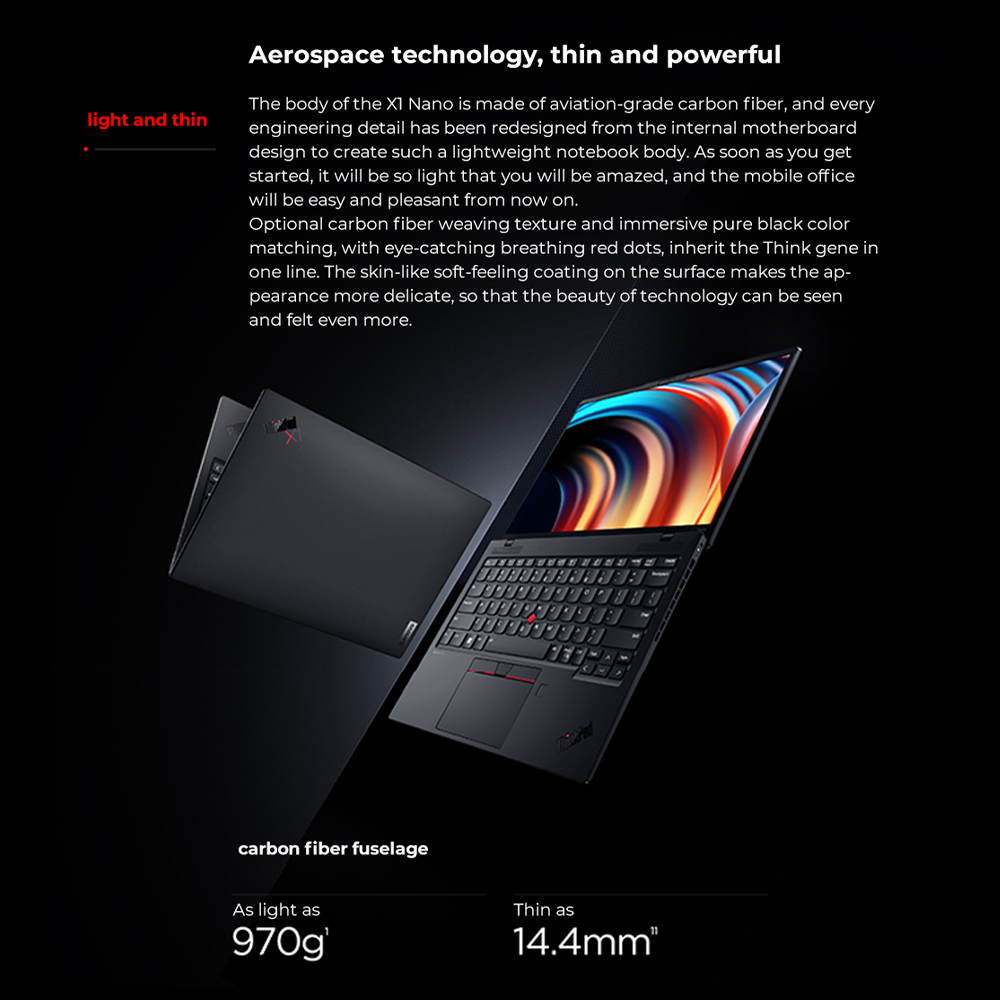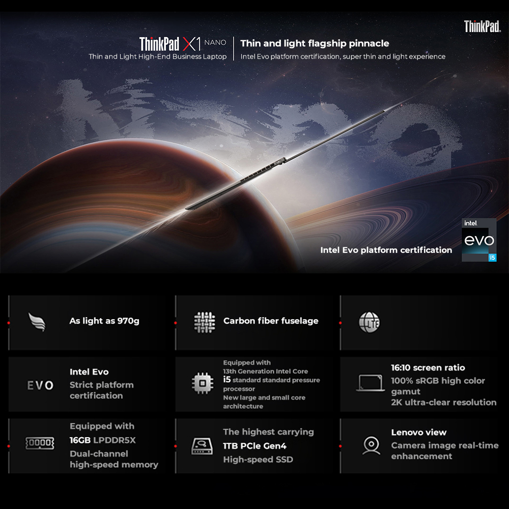 The X1 Nano has powerful power under its thin and light body. It is equipped with the new 13th generation Intel Core i5 standard pressure