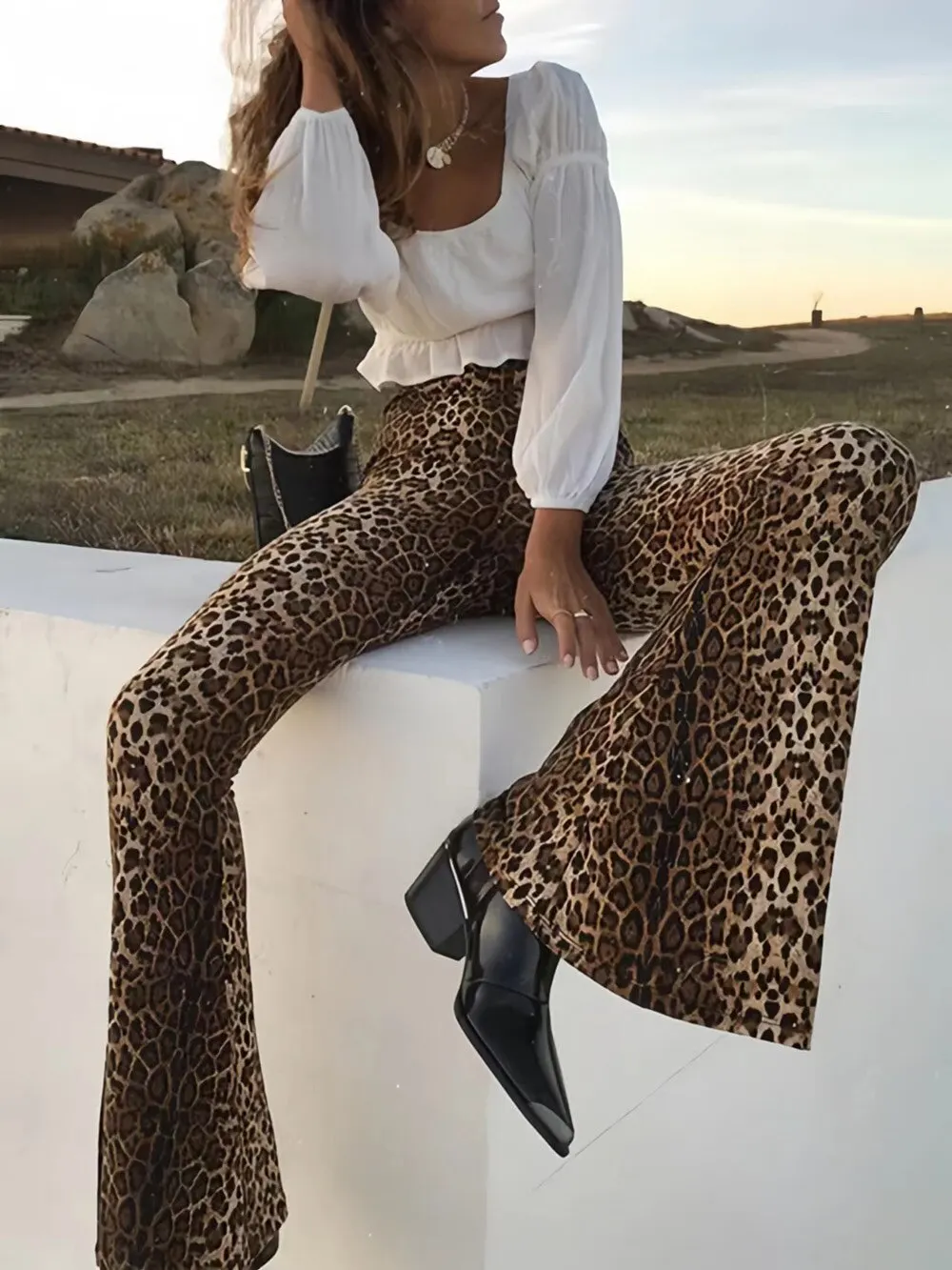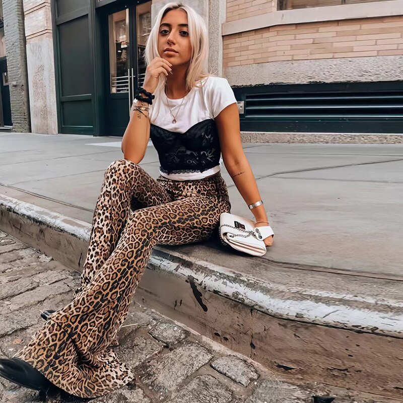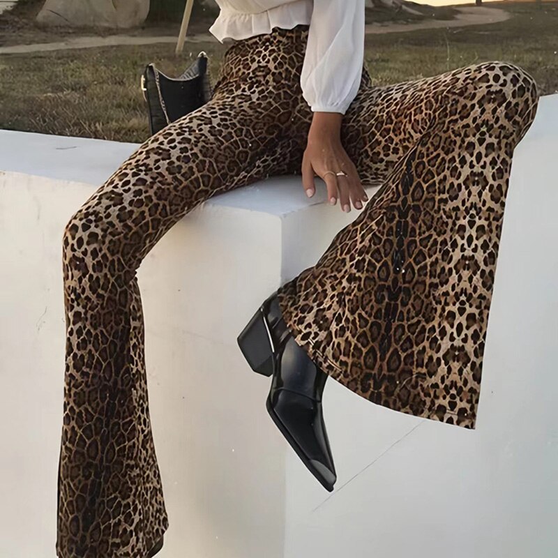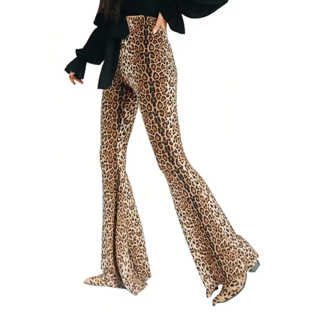 Leopard Print Flare Leggings for Women High Waist Elastic Bell Bottom Bootcut Womens Girls Flare Yoga Pants Boot Cut Trousers