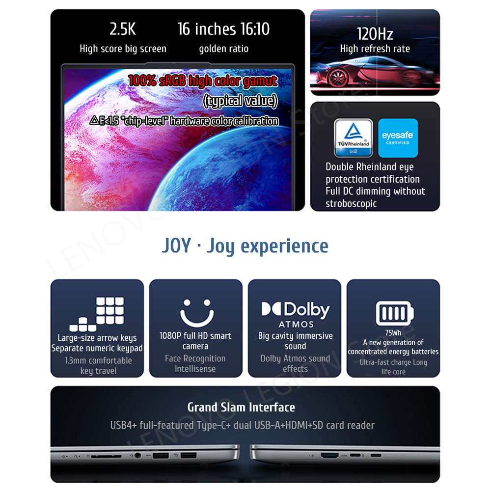Equipped with Lenovo's newly designed 75Wh new-generation energy-concentrating battery, which is smaller in size and lighter inweight, with stronger charging capacity, long life and multiple cycles.lt is equipped with the original 100w USB-C PD power adapter, charging for 15 minutes, and video playback for about 6 hours. Blood returns, no need to wait long