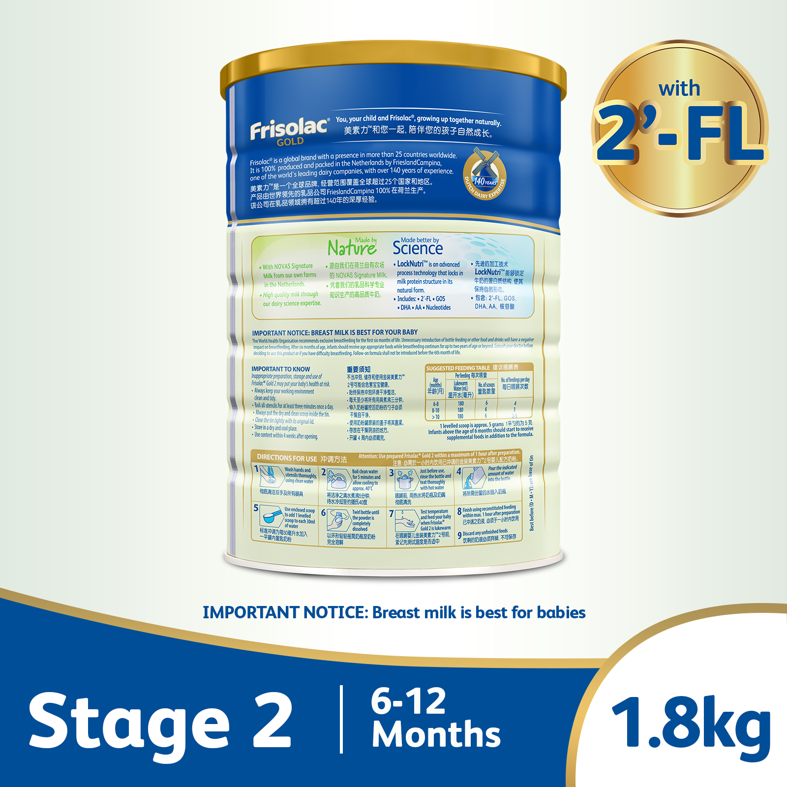 Introducing Frisolac Gold Stage 2, an infant milk powder formula for 6-12 months old’s. Frisolac Gold Stage 2 contains important nutrients to support overall growth and development. Frisolac uses LockNutriTM which is an advanced process technology that locks in milk protein structure in its natural form. Our infant formula is 100% produced and packed in the Netherlands. Frisolac is a global brand with presence in more than 20 countries worldwide.